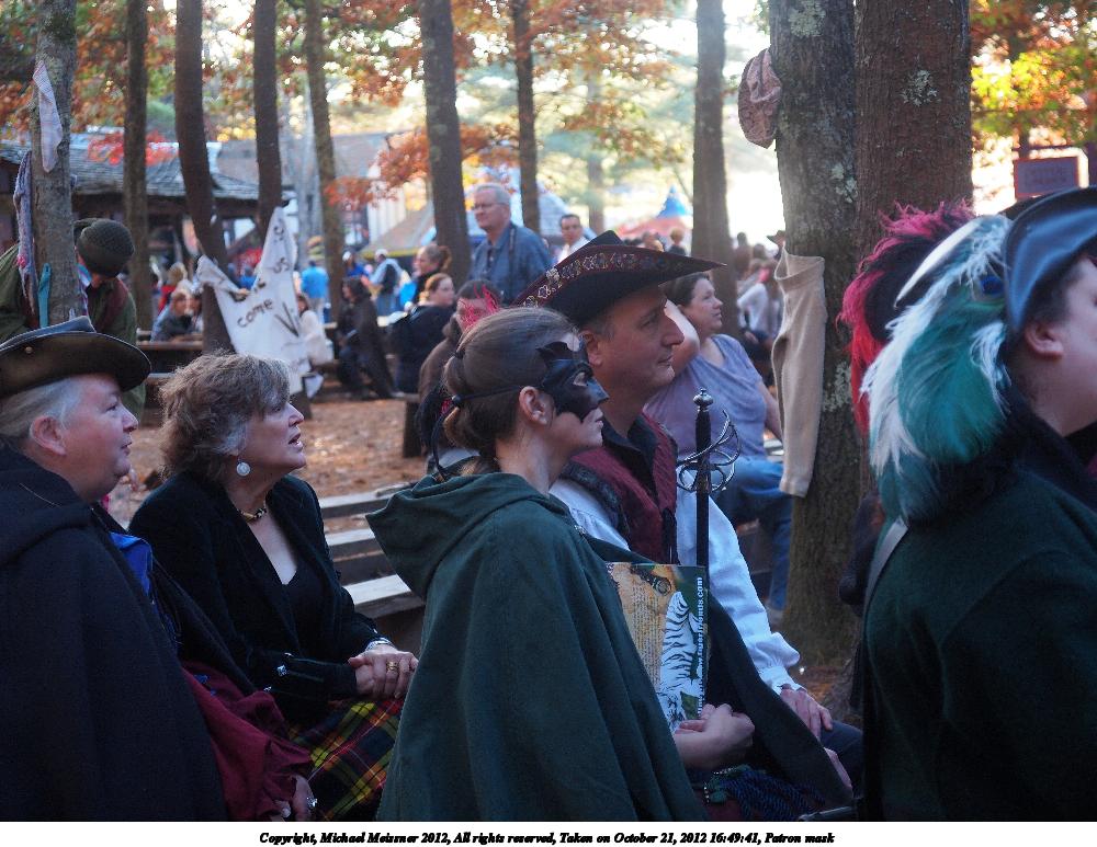 Picture #24: Patron mask Small: 1000x773, 145,943 bytes (143K), (html file) Large: 4000x3000, 3,577,559 bytes (3.4M), (html file) Copyright, Michael Meissner 2012, All rights reserved Olympus E-5 camera with Olympus 14-54mm f/2.8-3.5 lens f/3.3, ISO 500, 1/80 sec, 40.0mm, auto mode, vivid color, matrix metering, IS1 (All Direction Shake IS) 35mm equivalent focal length 80.0mm Programs used: crop, raw therapee Taken by Michael Meissner on October 21, 2012 16:49:41 Last modified on July 22, 2013 at 09:30 |
