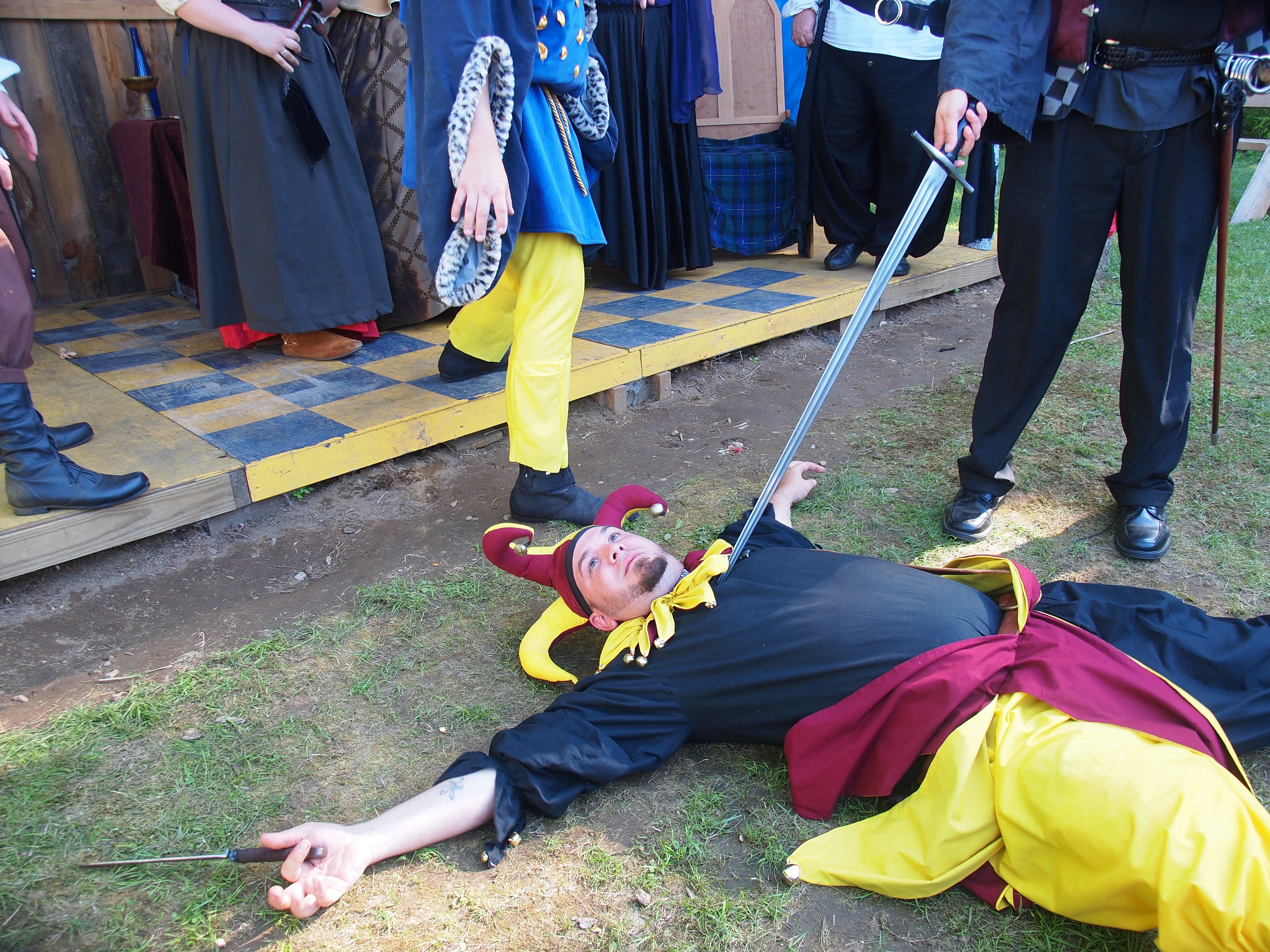 Picture #3: Jester at swordpoint #2 Small: 1000x773, 194,719 bytes (191K), (html file) Large: 4000x3000, 4,254,442 bytes (4.1M), (html file) Copyright, Michael Meissner 2012, All rights reserved Olympus E-5 camera with Olympus 14-54mm f/2.8-3.5 lens f/3.5, ISO 200, 1/100 sec, 14.0mm, auto mode, vivid color, matrix metering, IS1 (All Direction Shake IS) 35mm equivalent focal length 28.0mm Programs used: crop, raw therapee Taken by Michael Meissner on May 19, 2012 16:41:18 Last modified on May 16, 2013 at 22:55 |