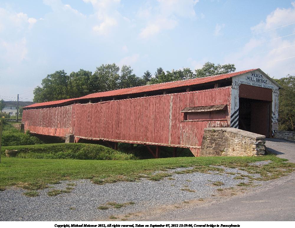 Picture #1: Covered bridge in Pennsylvania Thumb: 500x375, 46,544 bytes (46K) Small: 1000x773, 204,719 bytes (200K), (html file) Large: 4000x3000, 4,900,498 bytes (4.7M), (html file) Copyright, Michael Meissner 2012, All rights reserved Olympus E-P2 camera with Panasonic 20mm lens f/5.6, ISO 200, 1/800 sec, 20.0mm, auto mode, vivid color, SHQ, matrix metering, auto + manual focus, IS1 (All Direction Shake IS), noise filter low 35mm equivalent focal length 40.0mm Programs used: crop, raw therapee Taken by Michael Meissner on September 07, 2012 15:59:06 Last modified on July 21, 2013 at 23:14 |