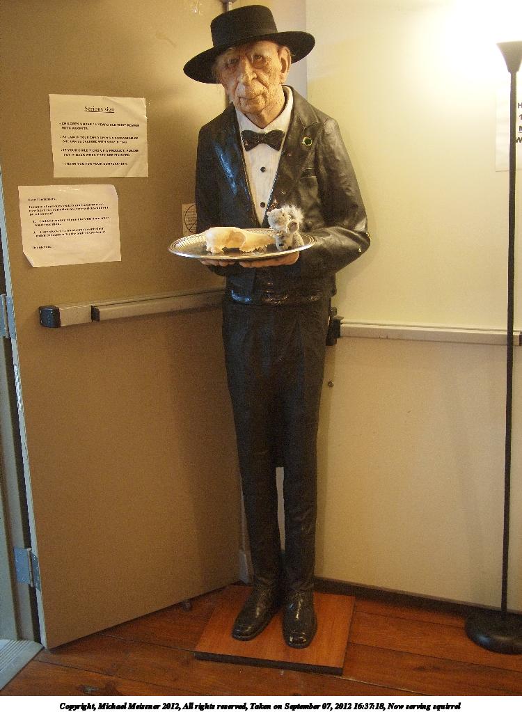 Picture #3: Now serving squirrel Thumb: 375x500, 35,097 bytes (35K) Small: 750x1023, 114,908 bytes (113K), (html file) Large: 3000x4000, 3,840,045 bytes (3.7M), (html file) Copyright, Michael Meissner 2012, All rights reserved Olympus E-P2 camera with Panasonic 20mm lens f/1.7, ISO 1000, 1/60 sec, 20.0mm, auto mode, vivid color, SHQ, matrix metering, auto + manual focus, IS1 (All Direction Shake IS), noise filter low 35mm equivalent focal length 40.0mm Taken by Michael Meissner on September 07, 2012 16:37:18 Last modified on July 21, 2013 at 23:16 |