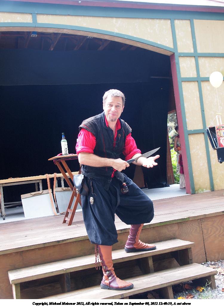 Picture #23: Sword fight Thumb: 500x375, 53,774 bytes (53K) Small: 1000x773, 197,519 bytes (193K), (html file) Large: 4000x3000, 4,849,211 bytes (4.6M), (html file) Copyright, Michael Meissner 2012, All rights reserved Olympus E-P2 camera with Olympus-m43 14-150mm f/4.0-5.6 lens f/5.0, ISO 500, 1/500 sec, 31.0mm, shutter priority, vivid color, matrix metering, IS1 (All Direction Shake IS), noise filter low 35mm equivalent focal length 62.0mm Programs used: crop, raw therapee Taken by Michael Meissner on September 09, 2012 13:22:13 Last modified on July 22, 2013 at 00:04 |