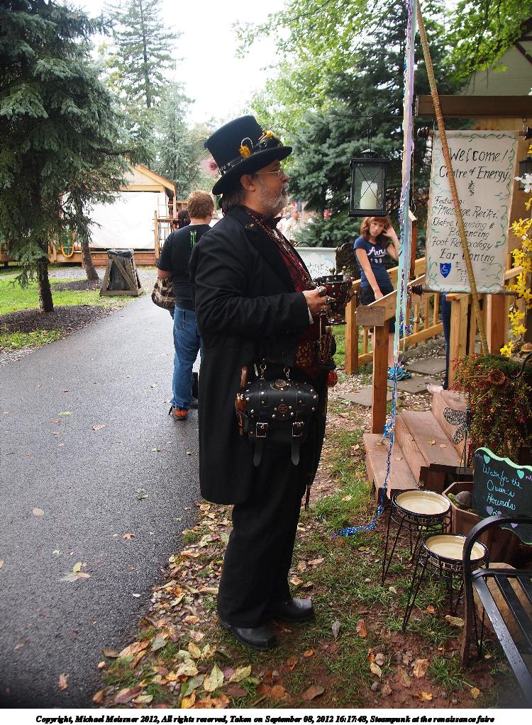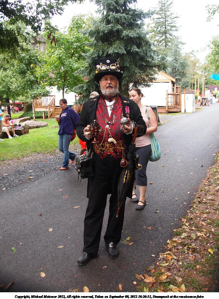 Picture #2: Steampunk at the renaissance faire #2 Thumb: 375x500, 65,764 bytes (65K) Small: 750x1023, 245,390 bytes (240K), (html file) Large: 3000x4000, 4,691,818 bytes (4.5M), (html file) Copyright, Michael Meissner 2012, All rights reserved Olympus E-5 camera with Olympus 14-54mm f/2.8-3.5 lens f/2.8, ISO 200, 1/80 sec, 14.0mm, auto mode, vivid color, matrix metering, IS1 (All Direction Shake IS) 35mm equivalent focal length 28.0mm Programs used: crop, raw therapee, rotate left Taken by Michael Meissner on September 08, 2012 16:26:31 Last modified on July 21, 2013 at 23:38 |