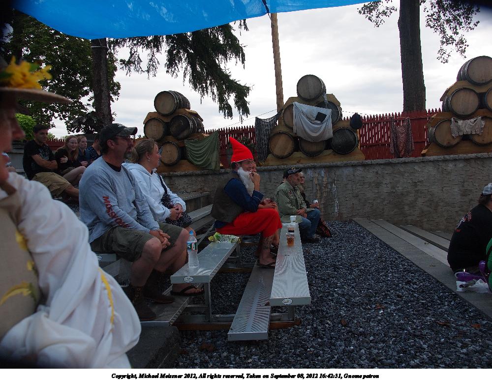 Picture #13: Gnome patron Thumb: 500x375, 54,153 bytes (53K) Small: 1000x773, 180,253 bytes (177K), (html file) Large: 4000x3000, 3,979,285 bytes (3.8M), (html file) Copyright, Michael Meissner 2012, All rights reserved Olympus E-5 camera with Olympus 14-54mm f/2.8-3.5 lens f/4.0, ISO 200, 1/125 sec, 14.0mm, auto mode, vivid color, matrix metering, IS1 (All Direction Shake IS) 35mm equivalent focal length 28.0mm Programs used: crop, raw therapee Taken by Michael Meissner on September 08, 2012 16:42:31 Last modified on July 21, 2013 at 23:43 |