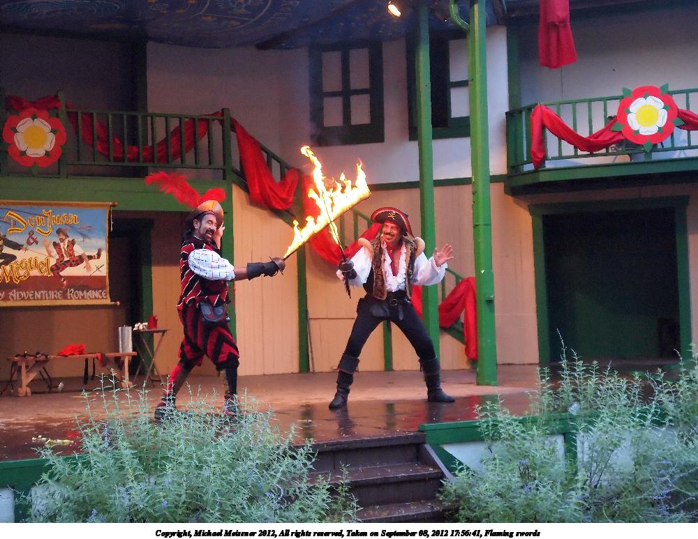 Picture #5: Flaming swords Thumb: 500x375, 52,721 bytes (52K) Small: 1000x773, 171,265 bytes (168K), (html file) Large: 4000x3000, 4,118,788 bytes (3.9M), (html file) Copyright, Michael Meissner 2012, All rights reserved Olympus E-5 camera with Olympus 14-54mm f/2.8-3.5 lens f/3.2, ISO 2500, 1/500 sec, 29.0mm, shutter priority, vivid color, matrix metering, IS1 (All Direction Shake IS) 35mm equivalent focal length 58.0mm Programs used: crop, noiseninja, raw therapee Taken by Michael Meissner on September 08, 2012 17:56:24 Last modified on July 21, 2013 at 23:50 |