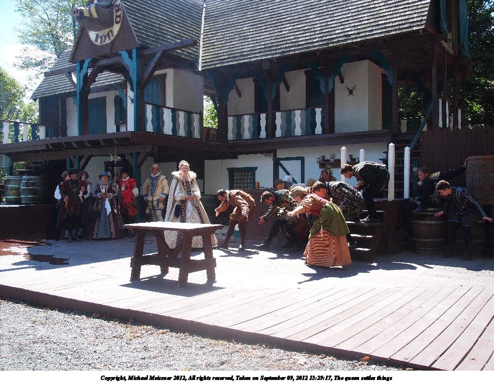 Picture #34: The queen settles things Thumb: 500x375, 58,395 bytes (58K) Small: 1000x773, 214,088 bytes (210K), (html file) Large: 4000x3000, 4,885,778 bytes (4.7M), (html file) Copyright, Michael Meissner 2012, All rights reserved Olympus E-P2 camera with Olympus-m43 14-150mm f/4.0-5.6 lens f/4.5, ISO 250, 1/500 sec, 17.0mm, shutter priority, vivid color, matrix metering, IS1 (All Direction Shake IS), noise filter low 35mm equivalent focal length 34.0mm Programs used: crop, raw therapee Taken by Michael Meissner on September 09, 2012 13:29:17 Last modified on July 22, 2013 at 00:06 |