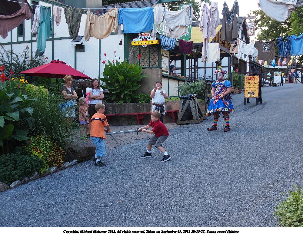 Picture #46: Young sword fighters Thumb: 500x375, 59,916 bytes (59K) Small: 1000x773, 258,460 bytes (253K), (html file) Large: 4000x3000, 4,824,342 bytes (4.6M), (html file) Copyright, Michael Meissner 2012, All rights reserved Olympus E-5 camera with Olympus 14-54mm f/2.8-3.5 lens f/3.5, ISO 200, 1/100 sec, 22.0mm, auto mode, vivid color, matrix metering, IS1 (All Direction Shake IS) 35mm equivalent focal length 44.0mm Programs used: crop, raw therapee Taken by Michael Meissner on September 09, 2012 18:15:27 Last modified on July 22, 2013 at 00:18 |