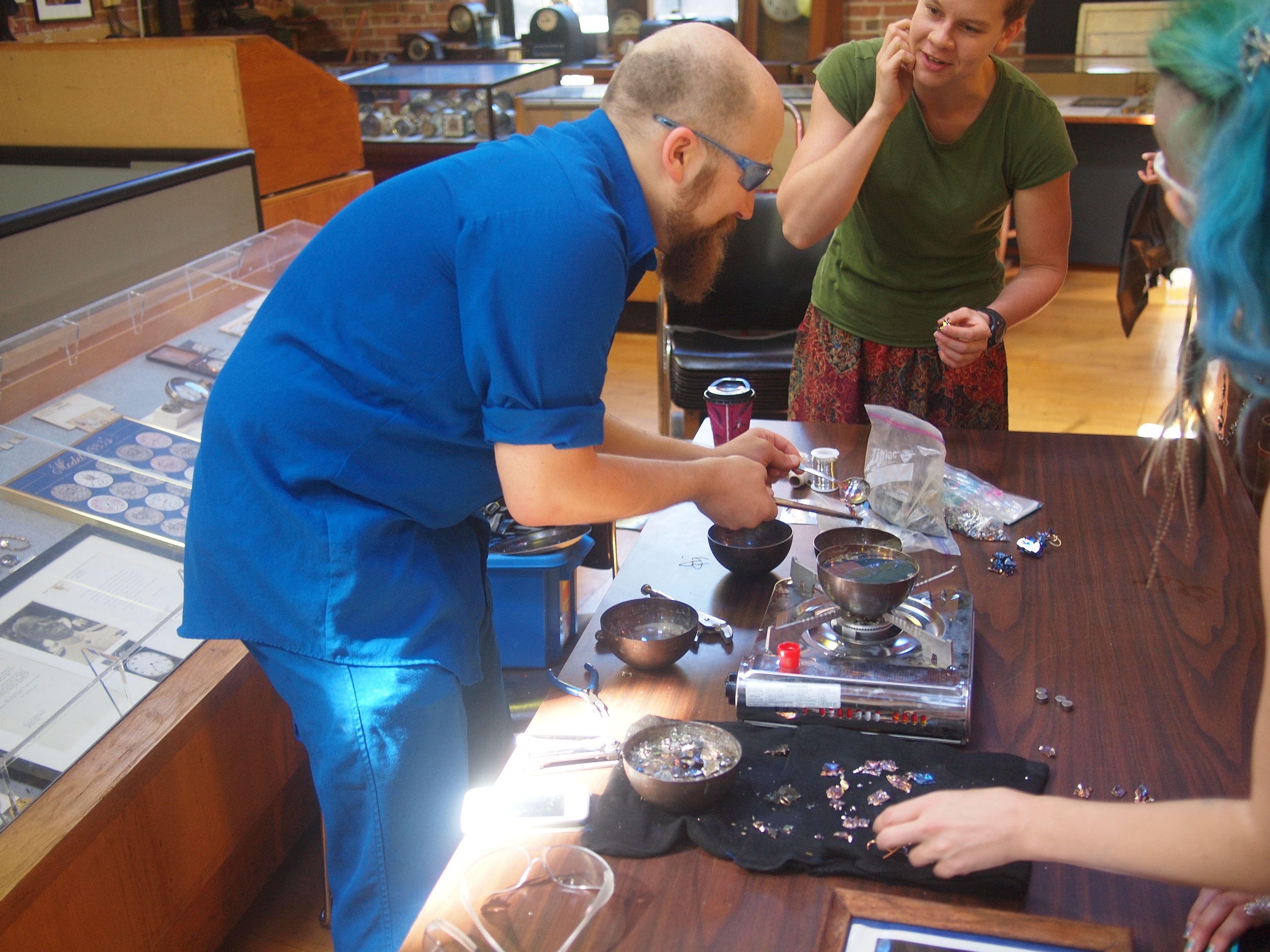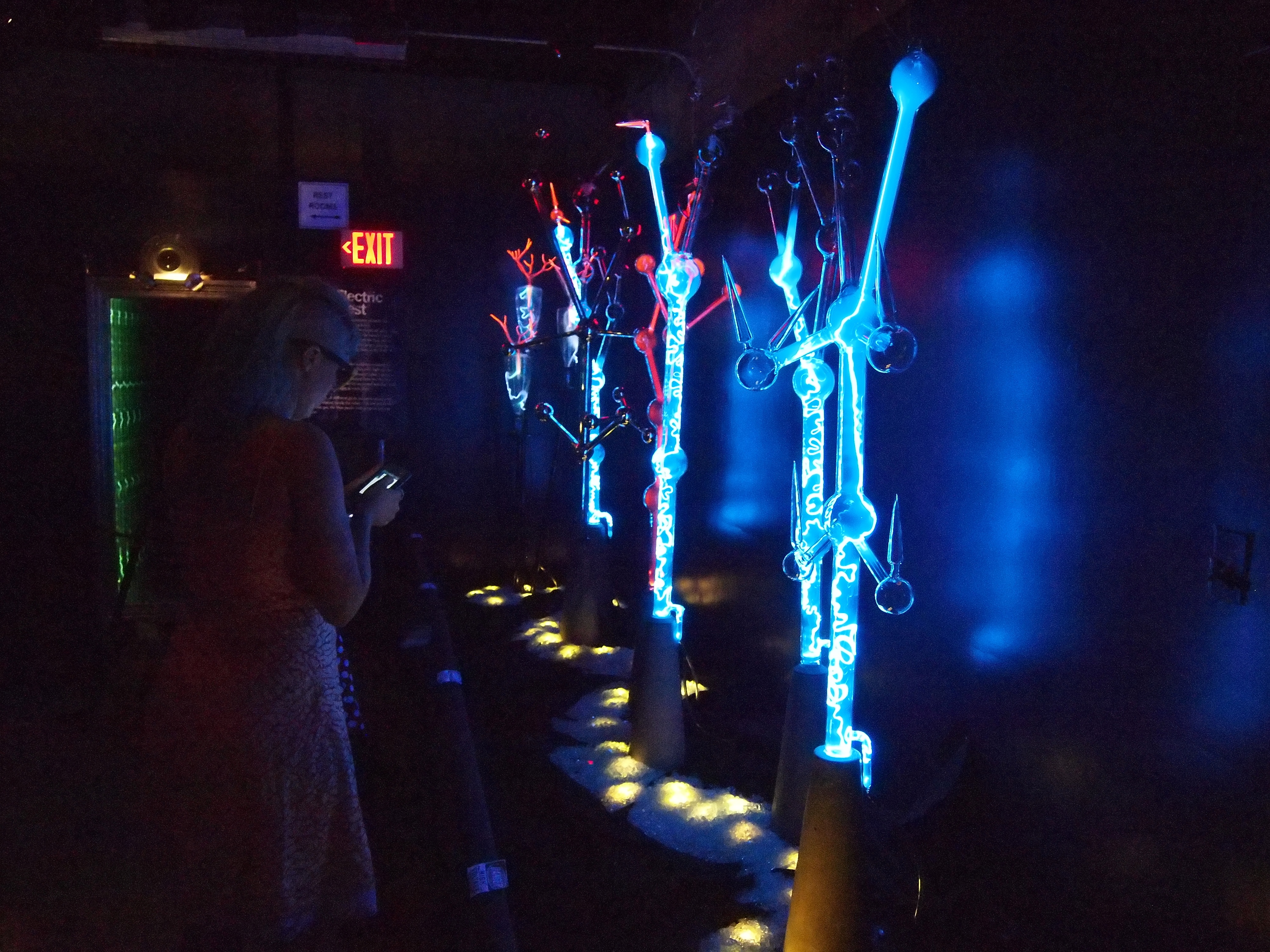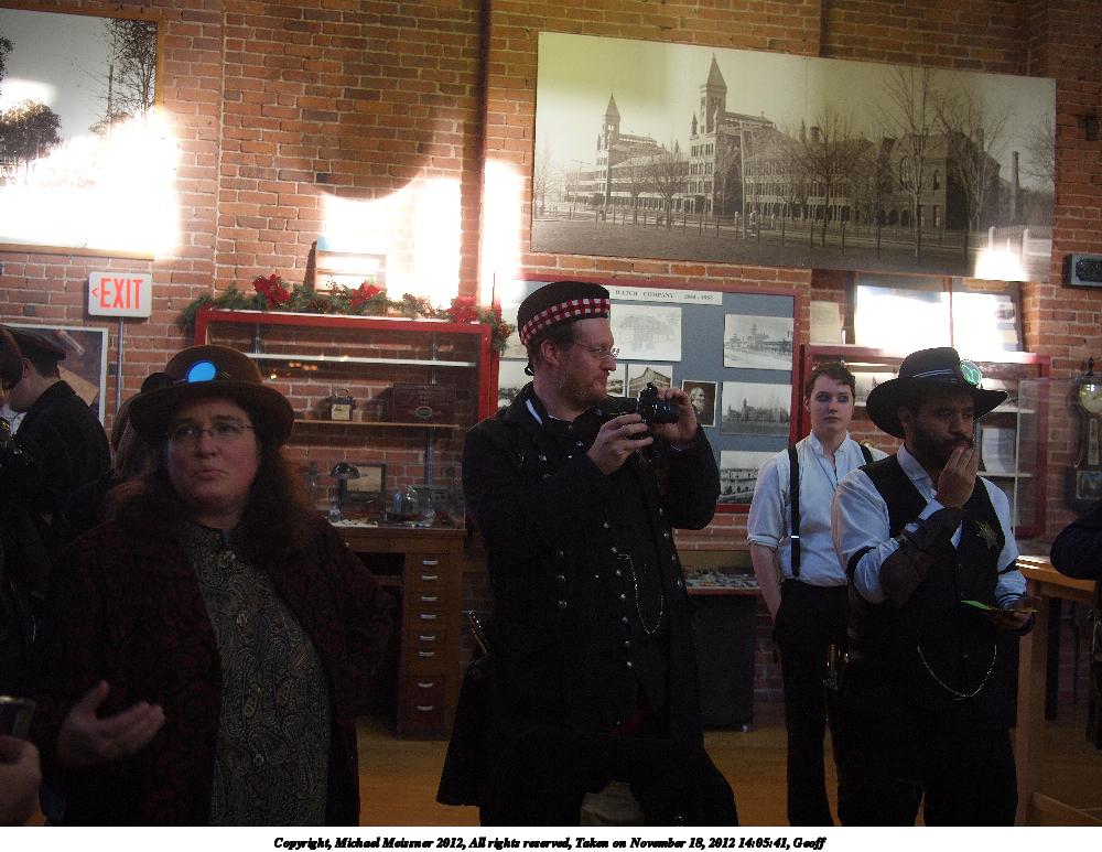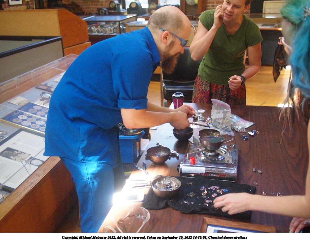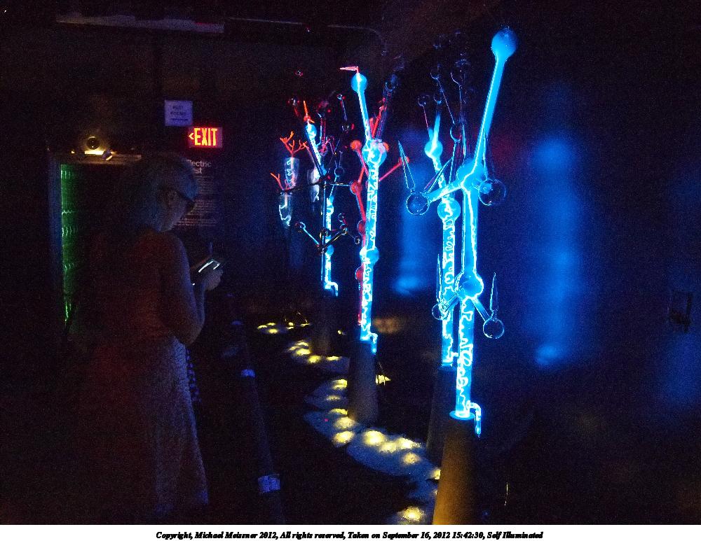 On the September meetup, we had some people doing various demonstrations with chemicals and watch making as part of the normal museum activities. Geoff was taking pictures, and I shot some duplicate shots to what he was taking. He also asked me to take several shots of him, since the photographer never gets in the shots. The show Self Illuminated had opened up at the museum, and I took some pictures of the display as well.
