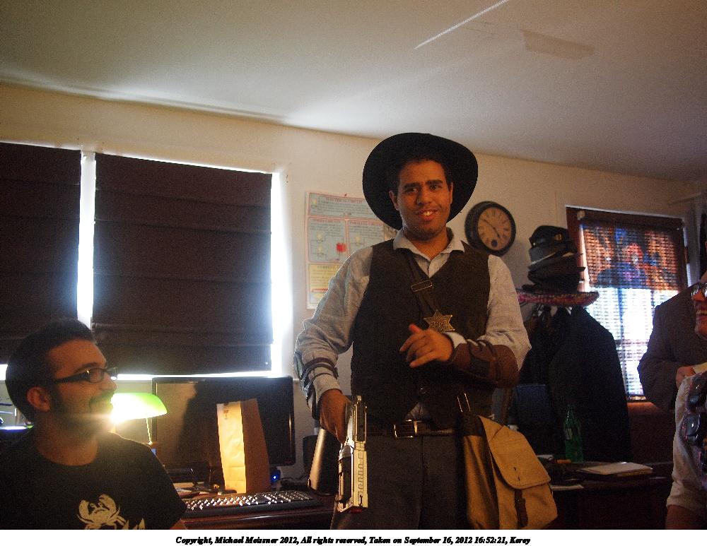 Picture #23: Stop or I'll shoot #2 Small: 800x623, 95,394 bytes (94K), (html file) Large: 3200x2400, 4,030,590 bytes (3.8M), (html file) Copyright, Michael Meissner 2012, All rights reserved Olympus E-P2 camera with Panasonic 20mm lens f/1.7, ISO 1250, 1/60 sec, 20.0mm, auto mode, vivid color, matrix metering, IS1 (All Direction Shake IS), noise filter low 35mm equivalent focal length 40.0mm Programs used: NoiseNinja, crop, gimp, rawtherapee Taken by Michael Meissner on September 16, 2012 16:51:31 Last modified on January 13, 2013 at 23:38 |