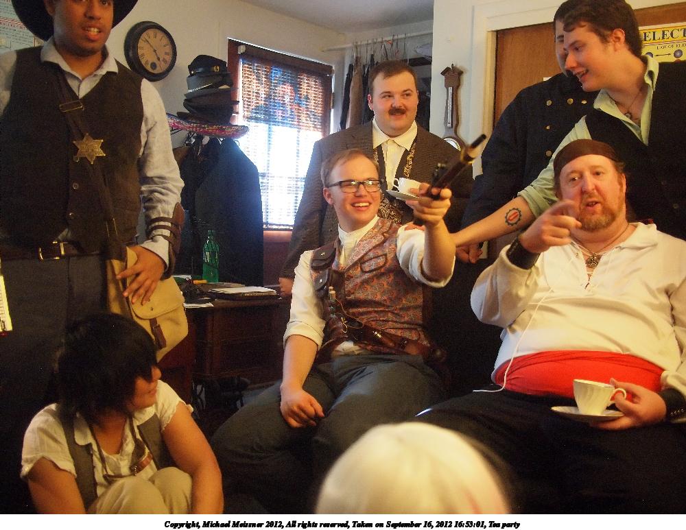 Picture #19: Tea party #3 Small: 1000x773, 140,470 bytes (138K), (html file) Large: 4000x3000, 6,204,709 bytes (5.9M), (html file) Copyright, Michael Meissner 2012, All rights reserved Olympus E-P2 camera with Panasonic 20mm lens f/1.8, ISO 1250, 1/60 sec, 20.0mm, auto mode, vivid color, spot metering, IS1 (All Direction Shake IS), noise filter low 35mm equivalent focal length 40.0mm Programs used: NoiseNinja, crop, rawtherapee Taken by Michael Meissner on September 16, 2012 16:53:01 Last modified on January 13, 2013 at 23:40 |