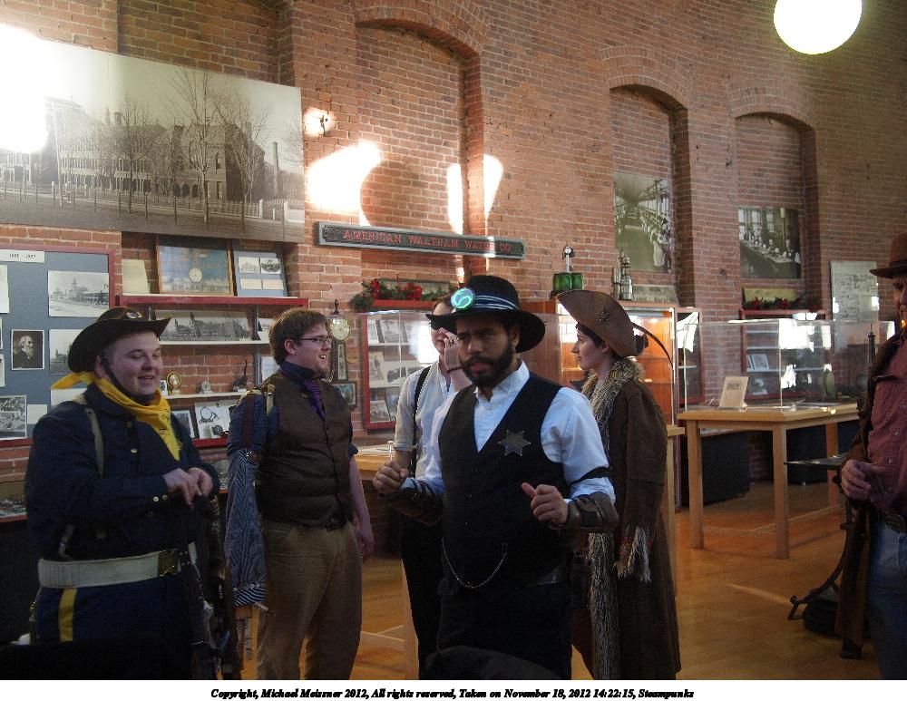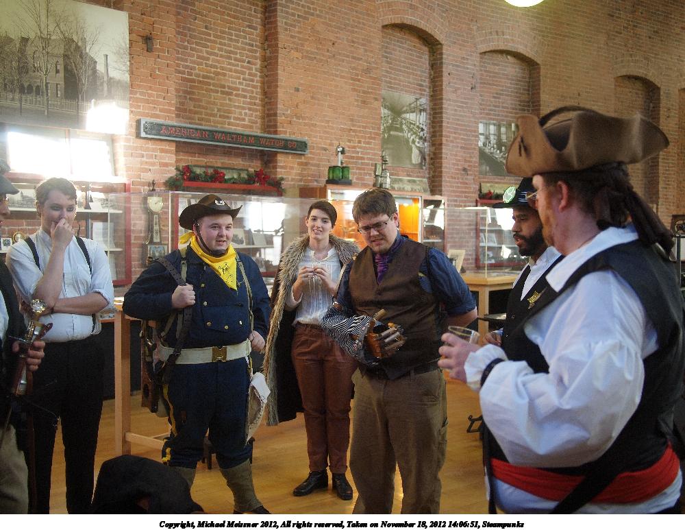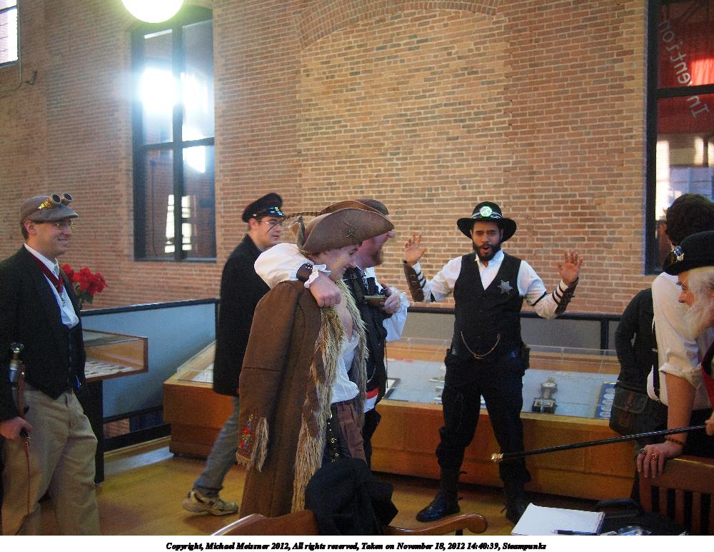 Picture #8: Steampunks #5 Small: 1000x773, 148,017 bytes (145K), (html file) Large: 4000x3000, 3,815,872 bytes (3.6M), (html file) Copyright, Michael Meissner 2012, All rights reserved Olympus E-P2 camera with Panasonic 20mm lens f/1.7, ISO 200, 1/60 sec, 20.0mm, auto mode, vivid color, matrix metering, IS1 (All Direction Shake IS), noise filter low 35mm equivalent focal length 40.0mm Programs used: crop, raw therapee Taken by Michael Meissner on November 18, 2012 14:30:44 Last modified on January 14, 2013 at 00:07 |