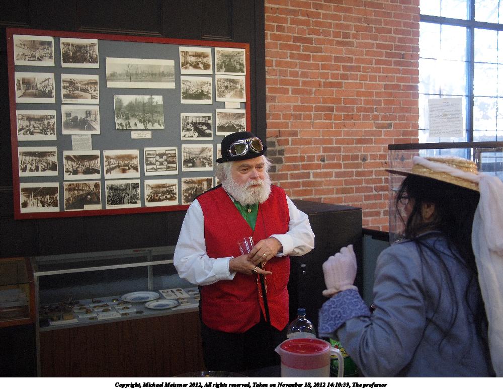 Picture #11: The professor Small: 1000x773, 148,117 bytes (145K), (html file) Large: 4000x3000, 4,133,870 bytes (3.9M), (html file) Copyright, Michael Meissner 2012, All rights reserved Olympus E-P2 camera with Panasonic 20mm lens f/1.7, ISO 250, 1/60 sec, 20.0mm, auto mode, vivid color, matrix metering, IS1 (All Direction Shake IS), noise filter low 35mm equivalent focal length 40.0mm Programs used: crop, raw therapee Taken by Michael Meissner on November 18, 2012 14:10:39 Last modified on January 14, 2013 at 00:06 |