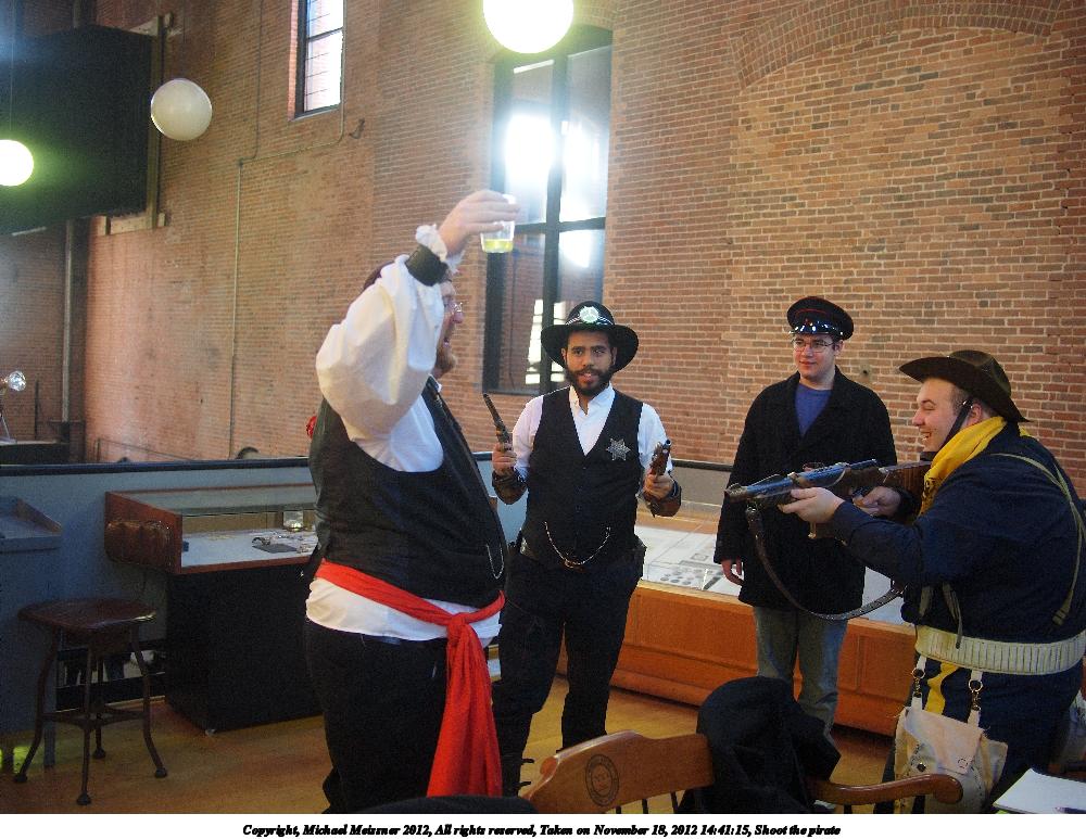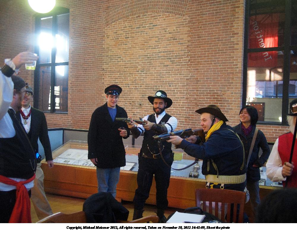 Picture #4: Shoot the pirate #2 Small: 1000x773, 148,827 bytes (146K), (html file) Large: 4000x3000, 4,194,542 bytes (4.0M), (html file) Copyright, Michael Meissner 2012, All rights reserved Olympus E-P2 camera with Panasonic 20mm lens f/1.8, ISO 400, 1/60 sec, 20.0mm, auto mode, vivid color, matrix metering, IS1 (All Direction Shake IS), noise filter low 35mm equivalent focal length 40.0mm Programs used: crop, raw therapee Taken by Michael Meissner on November 18, 2012 14:41:15 Last modified on January 14, 2013 at 00:09 |