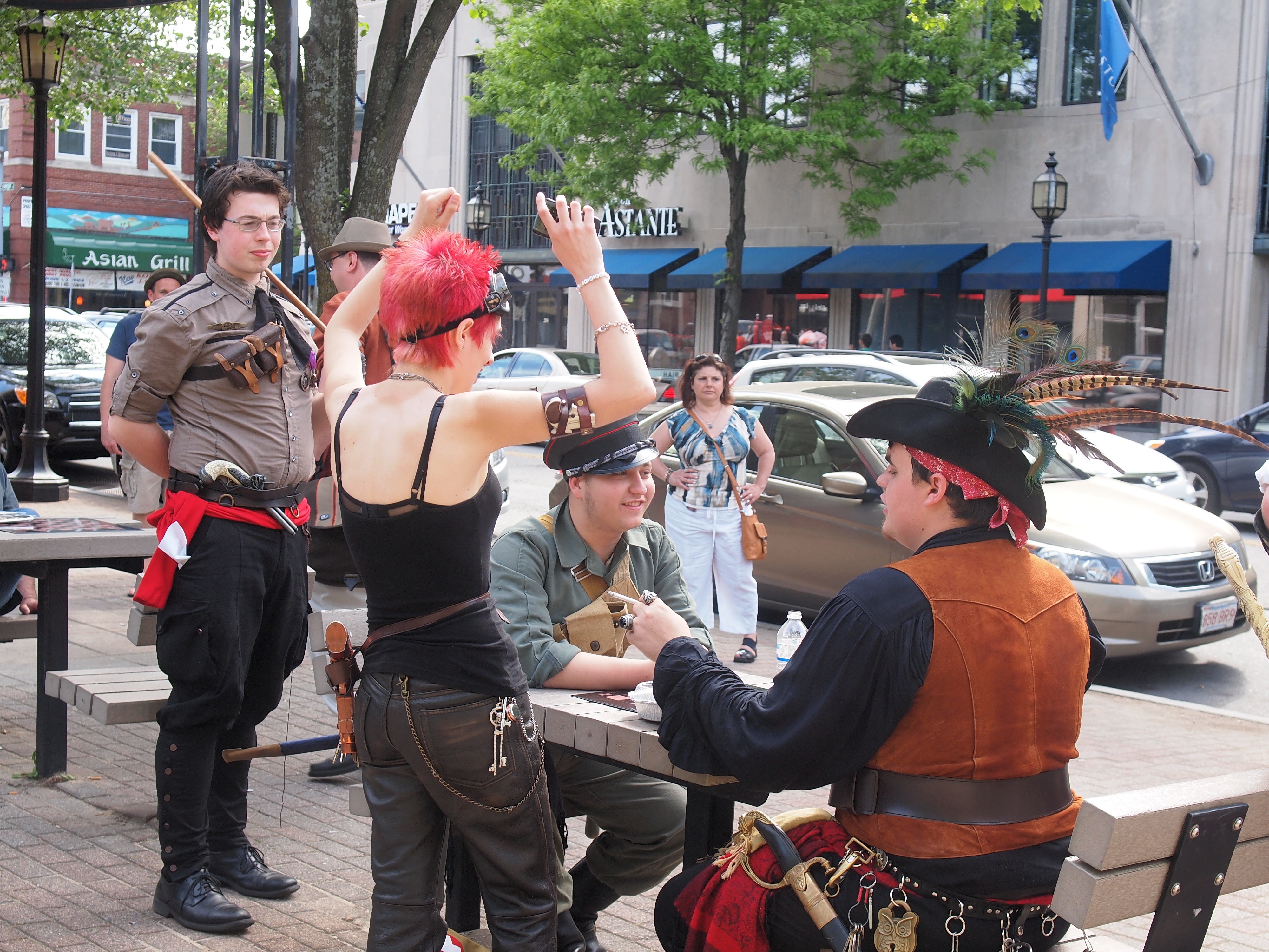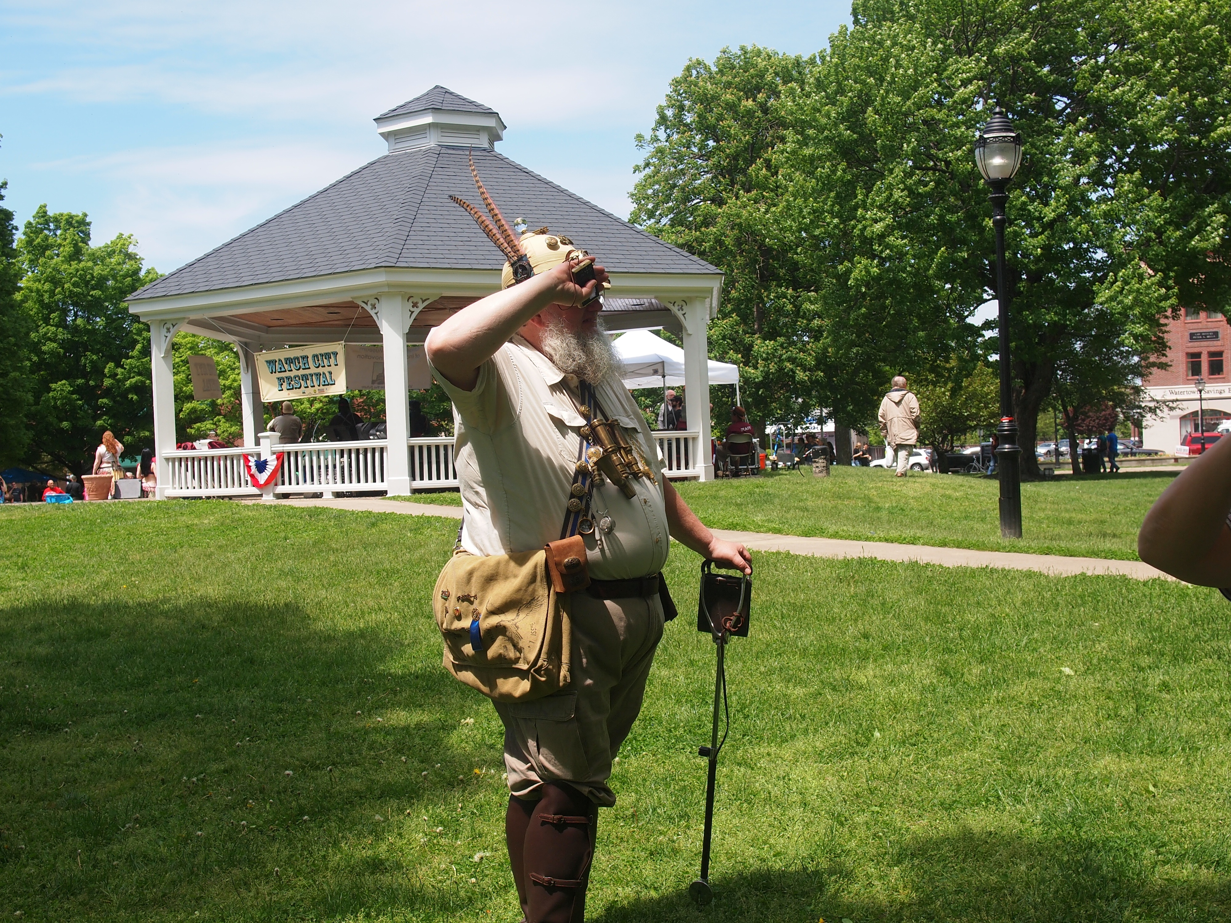 Picture #9: Steampunks #4 Small: 1000x773, 200,018 bytes (196K), (html file) Large: 4000x3000, 4,305,144 bytes (4.1M), (html file) Copyright, Michael Meissner 2012, All rights reserved Olympus E-P2 camera with Olympus-m43 14-150mm f/4.0-5.6 lens f/6.3, ISO 200, 1/200 sec, 67.0mm, auto mode, vivid color, SHQ, matrix metering, IS1 (All Direction Shake IS), noise reduction auto, noise filter low 35mm equivalent focal length 134.0mm Programs used: crop, raw therapee Taken by Michael Meissner on May 13, 2012 16:56:24 Last modified on June 12, 2012 at 22:12 |