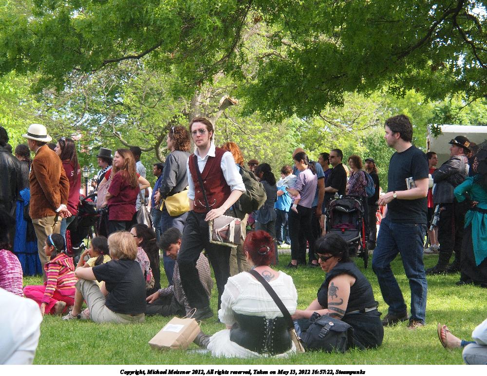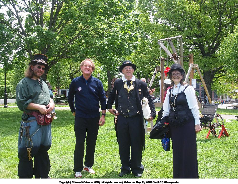 Picture #2: Front of the camera at the 2012 Watch City Steampunk steampunk convention 1000x773, 146,184 bytes (142.8K), (html file) Copyright, Michael Meissner 2012, All rights reserved Taken by Michael Meissner on May 13, 2012 22:56:19 |