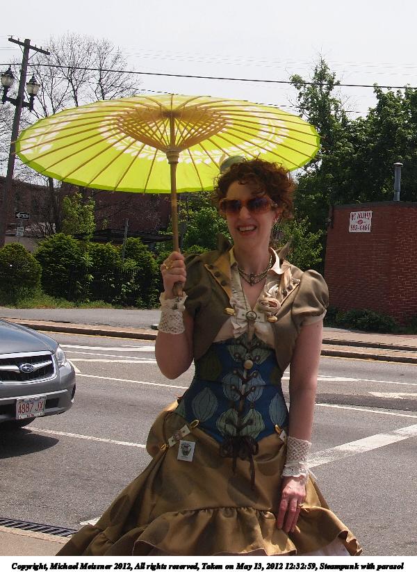 Picture #59: Steampunk with parasol Small: 600x823, 128,697 bytes (126K), (html file) Large: 1800x2400, 2,789,405 bytes (2.7M), (html file) Copyright, Michael Meissner 2012, All rights reserved Olympus E-5 camera with Olympus 14-54mm f/2.8-3.5 lens f/8.0, ISO 200, 1/500 sec, 22.0mm, auto mode, vivid color, matrix metering, IS1 (All Direction Shake IS) 35mm equivalent focal length 44.0mm Programs used: crop, gimp, raw therapee Taken by Michael Meissner on May 13, 2012 12:32:59 Last modified on June 12, 2012 at 21:36 |