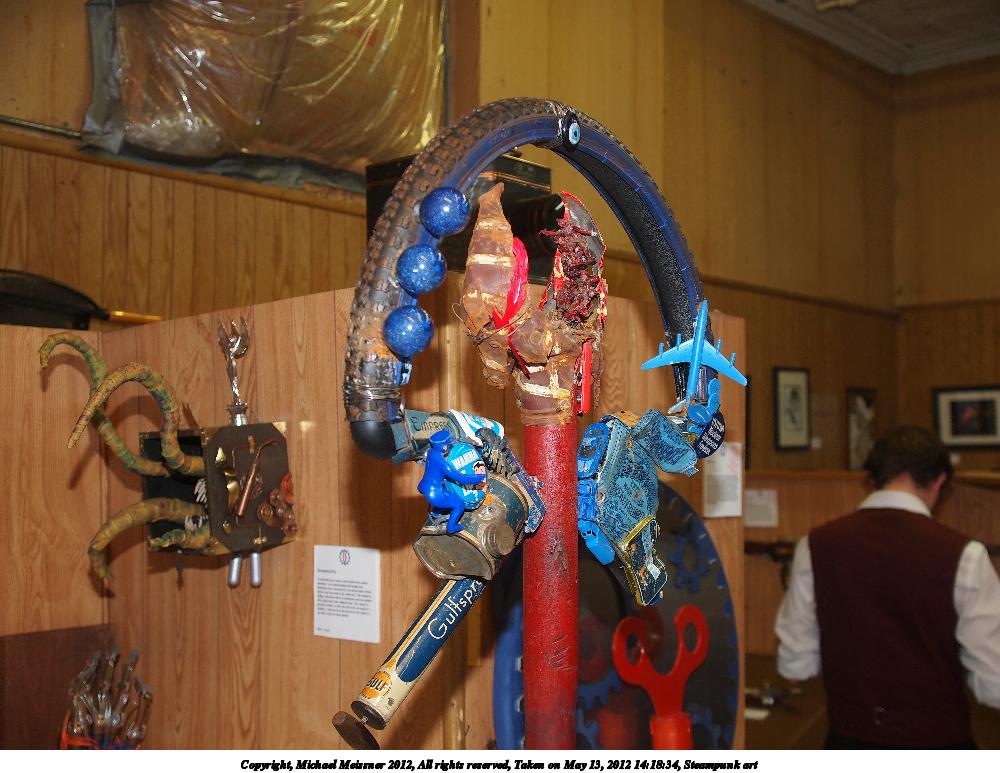 Picture #40: Steampunk art Small: 1000x773, 130,202 bytes (128K), (html file) Large: 4000x3000, 3,148,582 bytes (3.0M), (html file) Copyright, Michael Meissner 2012, All rights reserved Olympus E-5 camera with Olympus 14-54mm f/2.8-3.5 lens f/3.0, ISO 200, Metz 48 flash (+0.3 flash compensation), 1/60 sec, 22.0mm, auto mode, vivid color, matrix metering, IS1 (All Direction Shake IS) 35mm equivalent focal length 44.0mm Programs used: crop, raw therapee Taken by Michael Meissner on May 13, 2012 14:18:34 Last modified on June 12, 2012 at 21:50 |