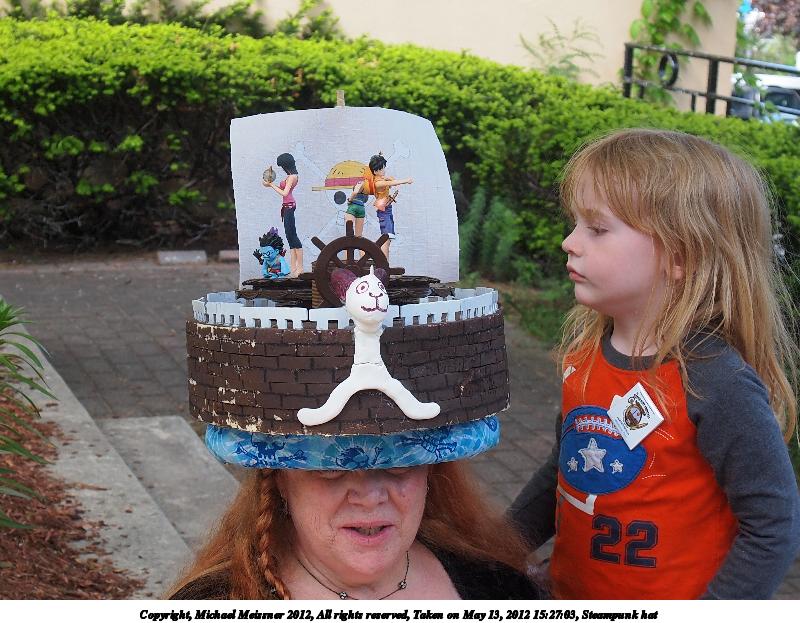 Picture #19: Steampunk hat #2 Small: 1000x773, 131,758 bytes (129K), (html file) Large: 4000x3000, 3,671,217 bytes (3.5M), (html file) Copyright, Michael Meissner 2012, All rights reserved Olympus E-P2 camera with Olympus-m43 14-150mm f/4.0-5.6 lens f/5.4, ISO 200, 1/200 sec, 75.0mm, aperture priority, vivid color, SHQ, matrix metering, IS1 (All Direction Shake IS), noise reduction auto, noise filter low 35mm equivalent focal length 150.0mm Programs used: crop, raw therapee Taken by Michael Meissner on May 13, 2012 16:40:04 Last modified on June 12, 2012 at 22:06 |
