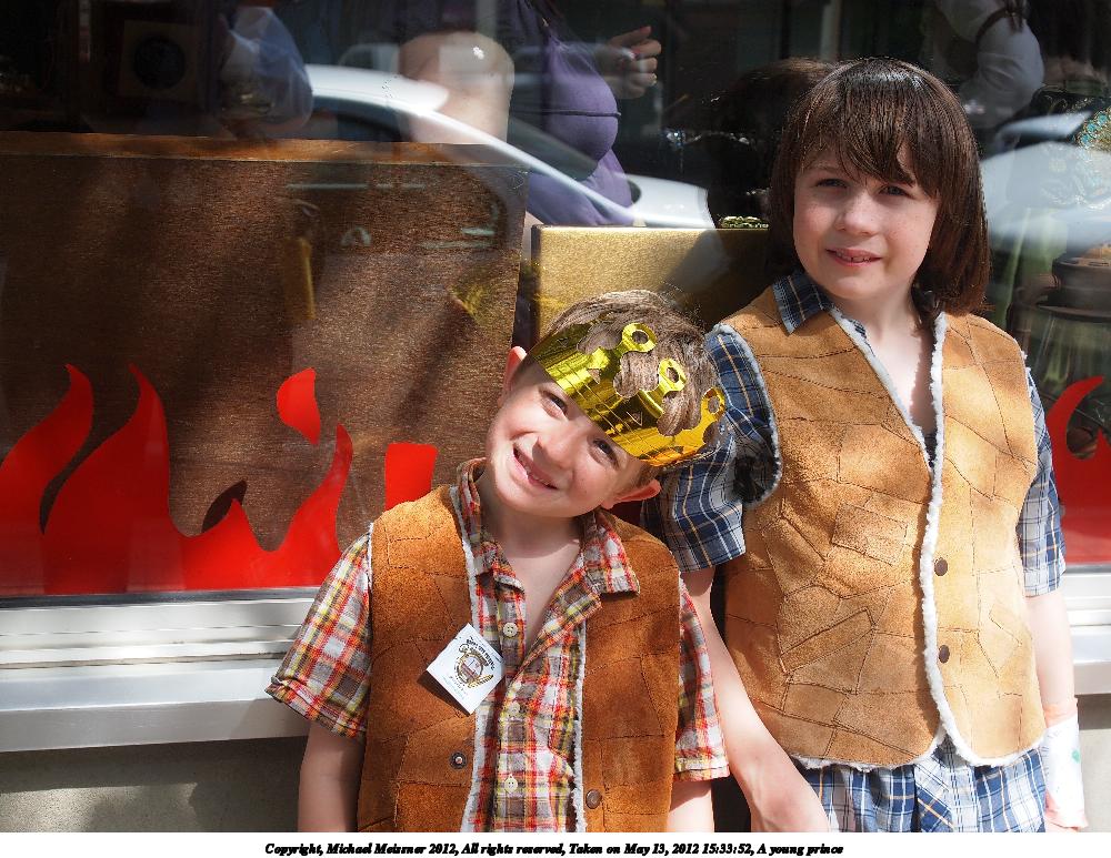 Picture #33: A young prince Small: 1000x773, 173,172 bytes (170K), (html file) Large: 4000x3000, 4,280,273 bytes (4.1M), (html file) Copyright, Michael Meissner 2012, All rights reserved Olympus E-5 camera with Olympus 14-54mm f/2.8-3.5 lens f/5.6, ISO 200, 1/250 sec, 27.0mm, auto mode, vivid color, matrix metering, IS1 (All Direction Shake IS) 35mm equivalent focal length 54.0mm Programs used: crop, raw therapee Taken by Michael Meissner on May 13, 2012 15:33:52 Last modified on June 12, 2012 at 21:55 |