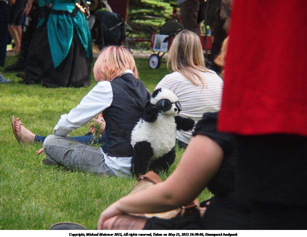 Picture #12: Steampunk backpack Small: 1000x773, 133,712 bytes (131K), (html file) Large: 4000x3000, 3,812,382 bytes (3.6M), (html file) Copyright, Michael Meissner 2012, All rights reserved Olympus E-P2 camera with Olympus-m43 14-150mm f/4.0-5.6 lens f/5.6, ISO 200, 1/200 sec, 90.0mm, auto mode, vivid color, SHQ, matrix metering, IS1 (All Direction Shake IS), noise reduction auto, noise filter low 35mm equivalent focal length 180.0mm Programs used: crop, raw therapee Taken by Michael Meissner on May 13, 2012 16:50:06 Last modified on June 12, 2012 at 22:10 |
