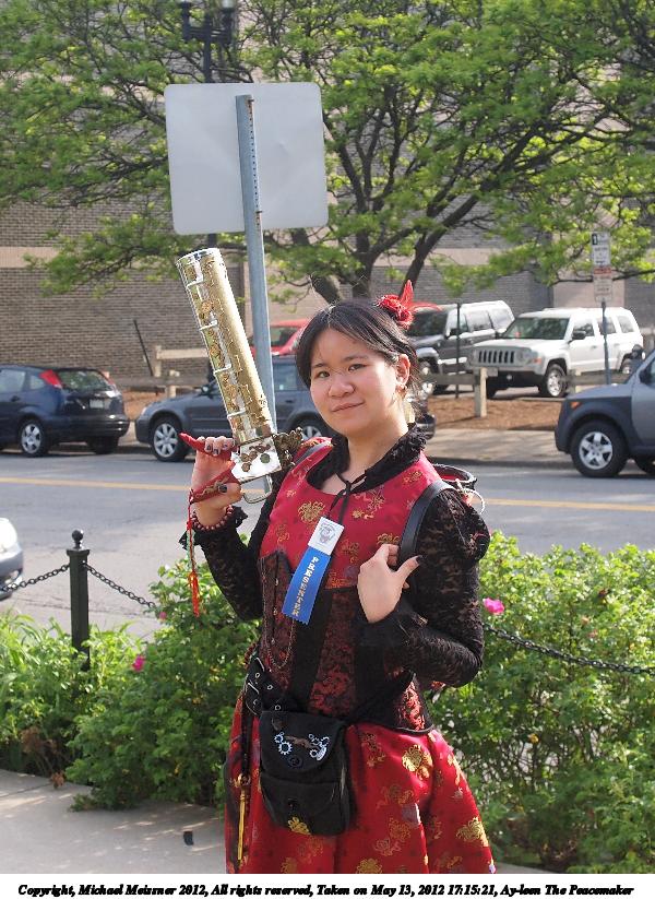 Picture #1: Ay-leen The Peacemaker Small: 600x823, 135,758 bytes (133K), (html file) Large: 1800x2400, 3,181,465 bytes (3.0M), (html file) Copyright, Michael Meissner 2012, All rights reserved Olympus E-5 camera with Olympus 14-54mm f/2.8-3.5 lens f/5.6, ISO 200, 1/200 sec, 23.0mm, auto mode, vivid color, matrix metering, IS1 (All Direction Shake IS) 35mm equivalent focal length 46.0mm Programs used: crop, gimp, raw therapee Taken by Michael Meissner on May 13, 2012 17:15:21 Last modified on June 12, 2012 at 22:17 |