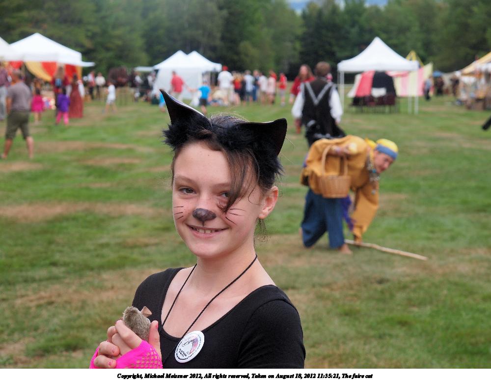 Picture #3: The faire cat Small: 1000x773, 103,121 bytes (101K), (html file) Large: 4000x3000, 2,589,525 bytes (2.5M), (html file) Copyright, Michael Meissner 2012, All rights reserved Olympus E-5 camera with Olympus 14-54mm f/2.8-3.5 lens f/5.6, ISO 200, 1/250 sec, 44.0mm, auto mode, vivid color, matrix metering, IS1 (All Direction Shake IS) 35mm equivalent focal length 88.0mm Programs used: crop, raw therapee Taken by Michael Meissner on August 18, 2012 11:35:21 Last modified on February 10, 2013 at 00:07 |