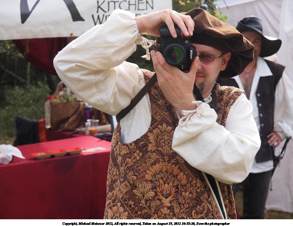 Picture #29: Dave the photographer Small: 1000x773, 138,055 bytes (135K), (html file) Large: 4000x3000, 3,263,104 bytes (3.1M), (html file) Copyright, Michael Meissner 2012, All rights reserved Olympus E-5 camera with Olympus 14-54mm f/2.8-3.5 lens f/5.0, ISO 200, 1/250 sec, 50.0mm, auto mode, vivid color, matrix metering, IS1 (All Direction Shake IS) 35mm equivalent focal length 100.0mm Programs used: crop, raw therapee Taken by Michael Meissner on August 19, 2012 16:55:20 Last modified on February 10, 2013 at 01:01 |