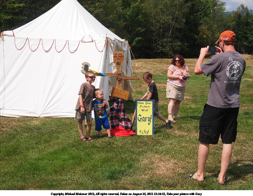 Picture #75: Take your picture with Gary #3 Small: 800x623, 146,047 bytes (143K), (html file) Large: 2400x1800, 3,759,080 bytes (3.6M), (html file) Copyright, Michael Meissner 2012, All rights reserved Olympus E-5 camera with Olympus 14-54mm f/2.8-3.5 lens f/6.3, ISO 200, 1/320 sec, 38.0mm, auto mode, vivid color, matrix metering, IS1 (All Direction Shake IS) 35mm equivalent focal length 76.0mm Programs used: crop, gimp, raw therapee Taken by Michael Meissner on August 26, 2012 15:23:14 Last modified on February 17, 2013 at 20:25 |
