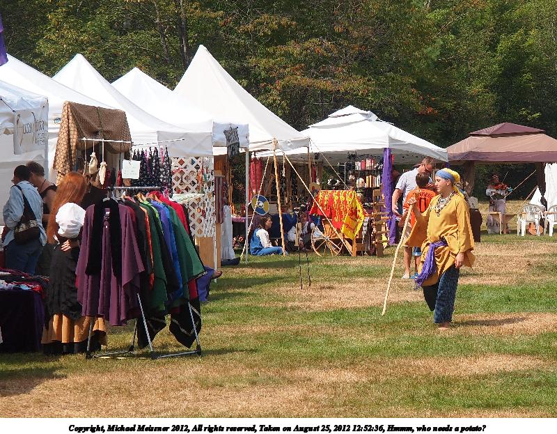 Picture #6: Waterville Valley Renaissance Faire Small: 1000x773, 157,371 bytes (154K), (html file) Large: 4000x3000, 4,112,528 bytes (3.9M), (html file) Copyright, Michael Meissner 2012, All rights reserved Olympus E-5 camera with Olympus 14-54mm f/2.8-3.5 lens f/7.1, ISO 200, 1/400 sec, 19.0mm, auto mode, vivid color, matrix metering, IS1 (All Direction Shake IS) 35mm equivalent focal length 38.0mm Programs used: crop, raw therapee Taken by Michael Meissner on August 18, 2012 11:39:57 Last modified on February 10, 2013 at 00:08 |