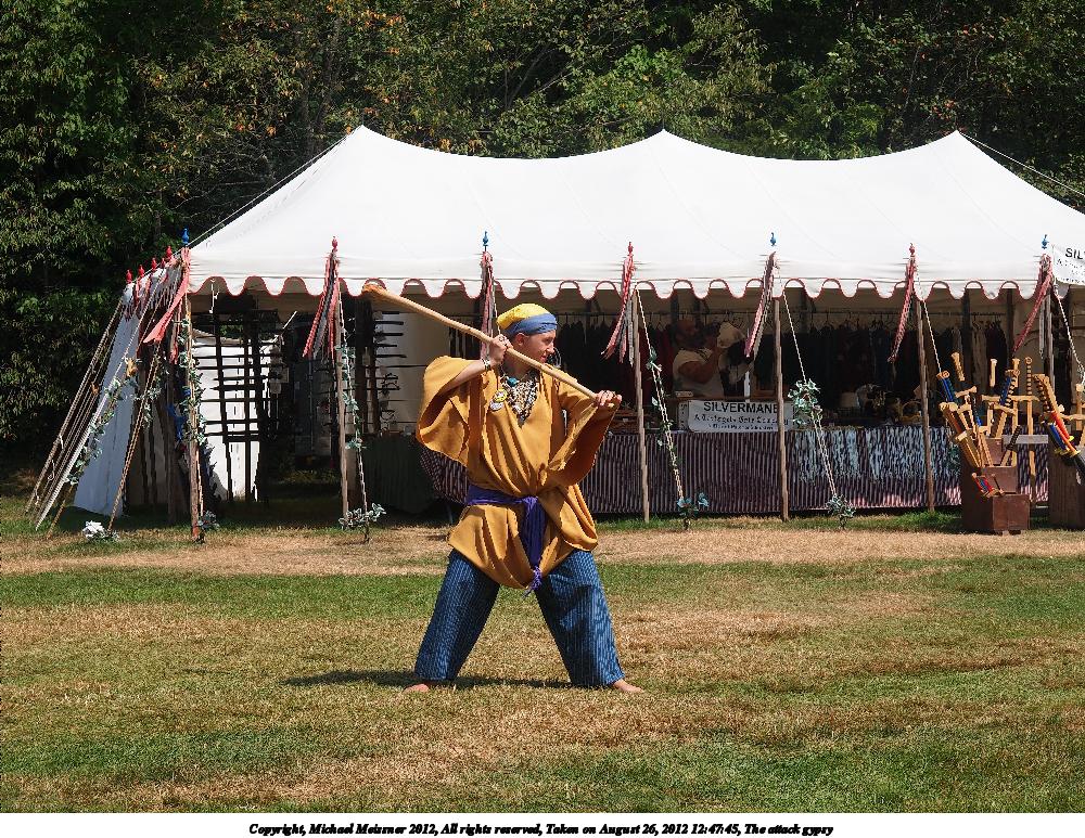 Picture #41: Attack of the gypsy #2 Small: 600x823, 133,406 bytes (131K), (html file) Large: 1800x2400, 3,326,171 bytes (3.2M), (html file) Copyright, Michael Meissner 2012, All rights reserved Olympus E-5 camera with Olympus 14-54mm f/2.8-3.5 lens f/7.1, ISO 200, 1/500 sec, 54.0mm, auto mode, vivid color, matrix metering, IS1 (All Direction Shake IS) 35mm equivalent focal length 108.0mm Programs used: crop, gimp, raw therapee Taken by Michael Meissner on August 25, 2012 12:09:13 Last modified on February 17, 2013 at 19:25 |
