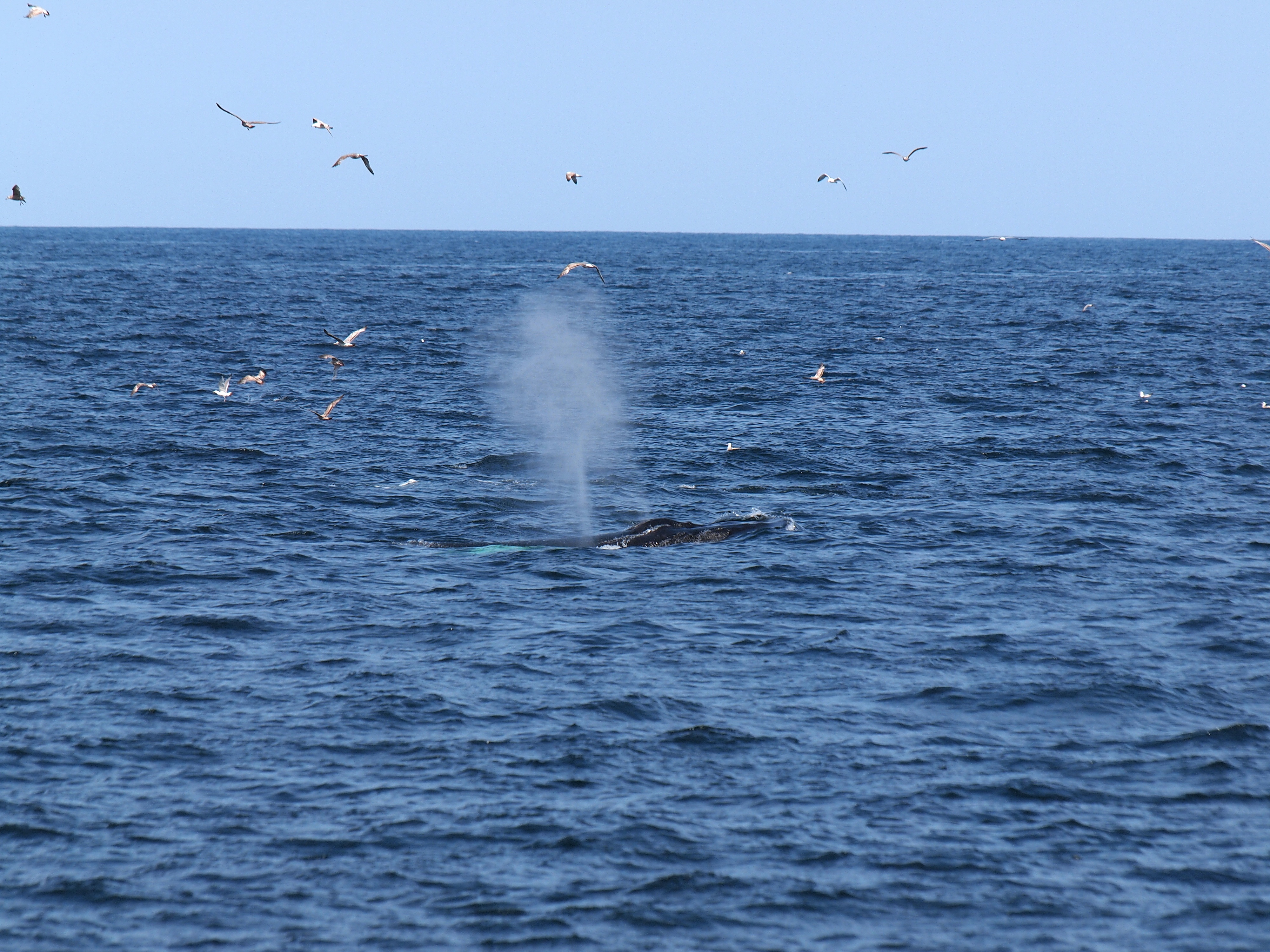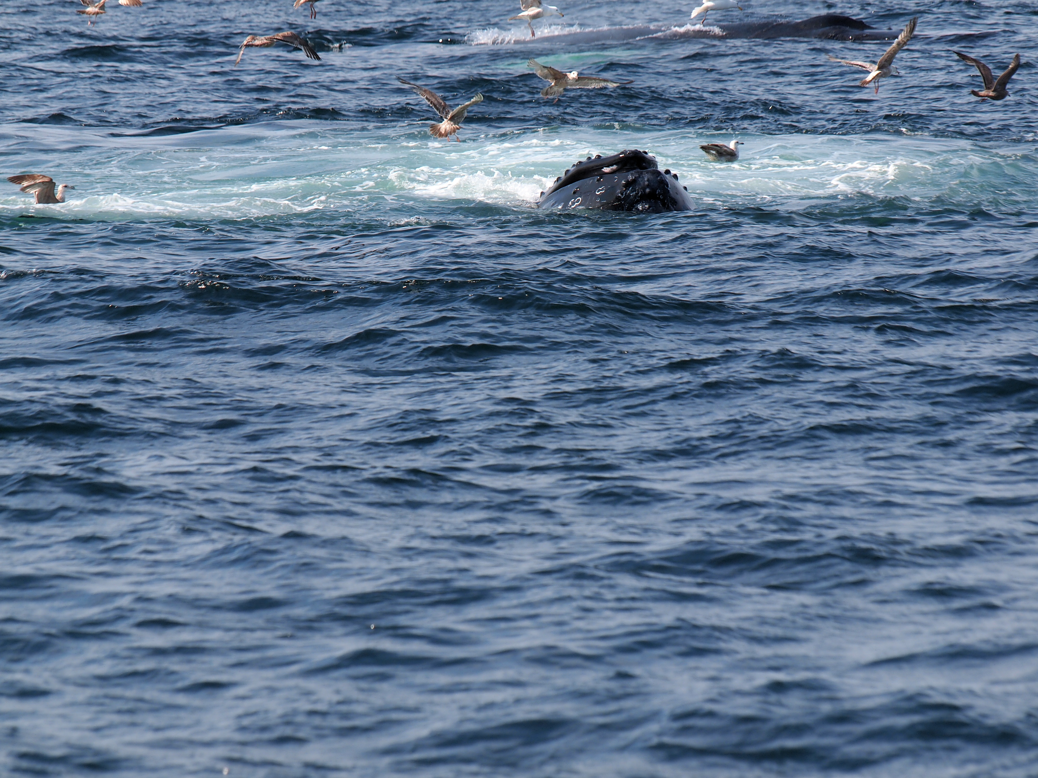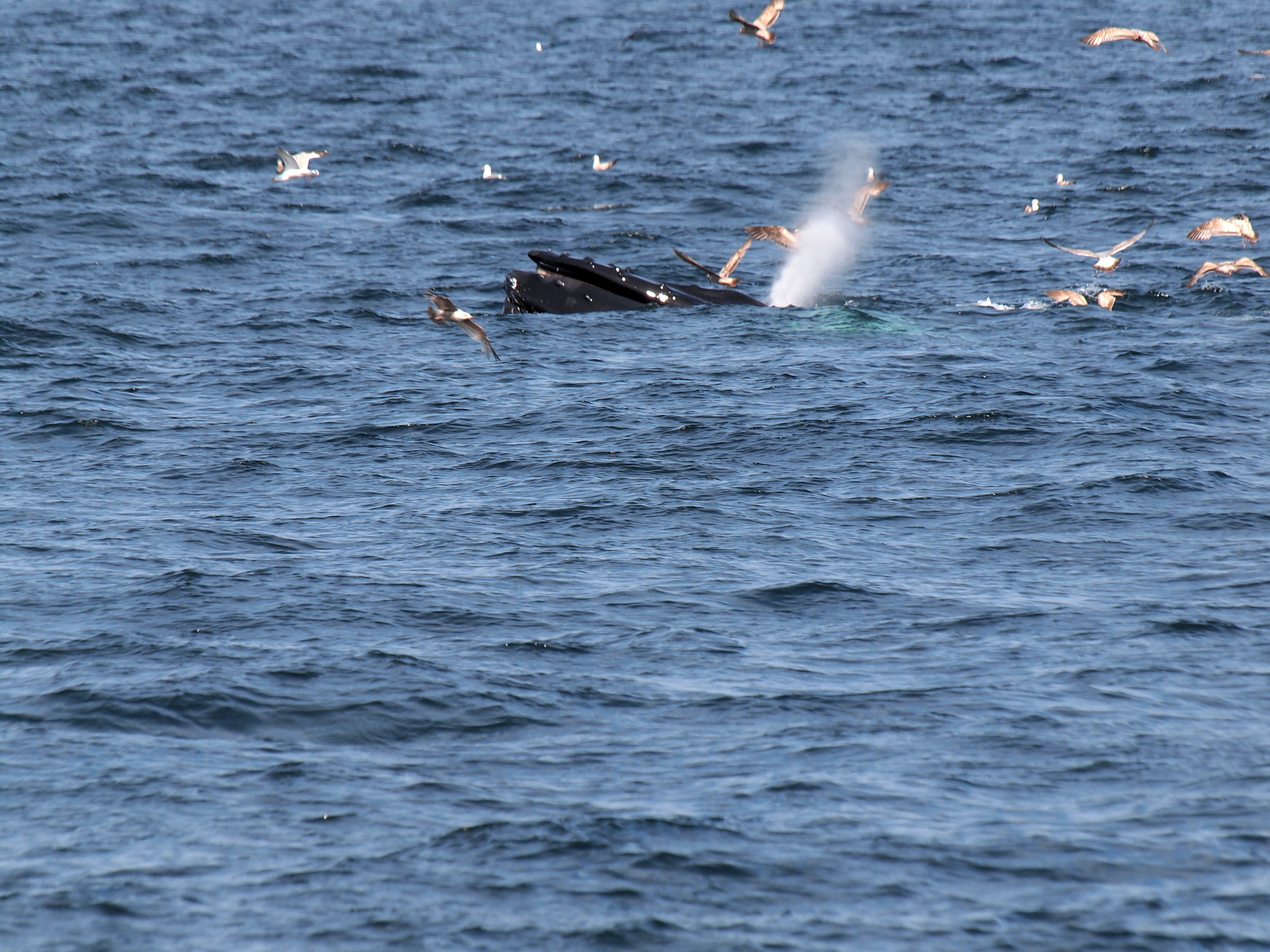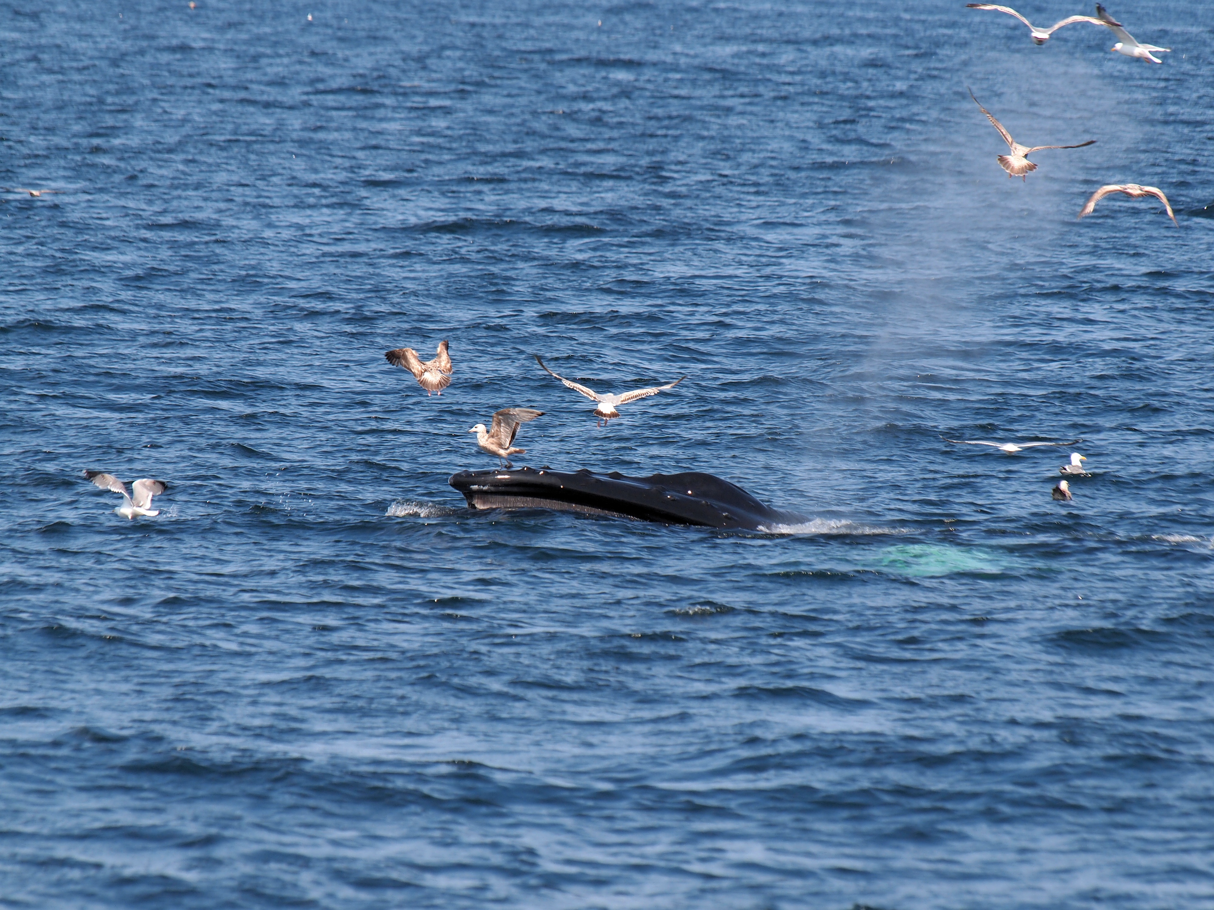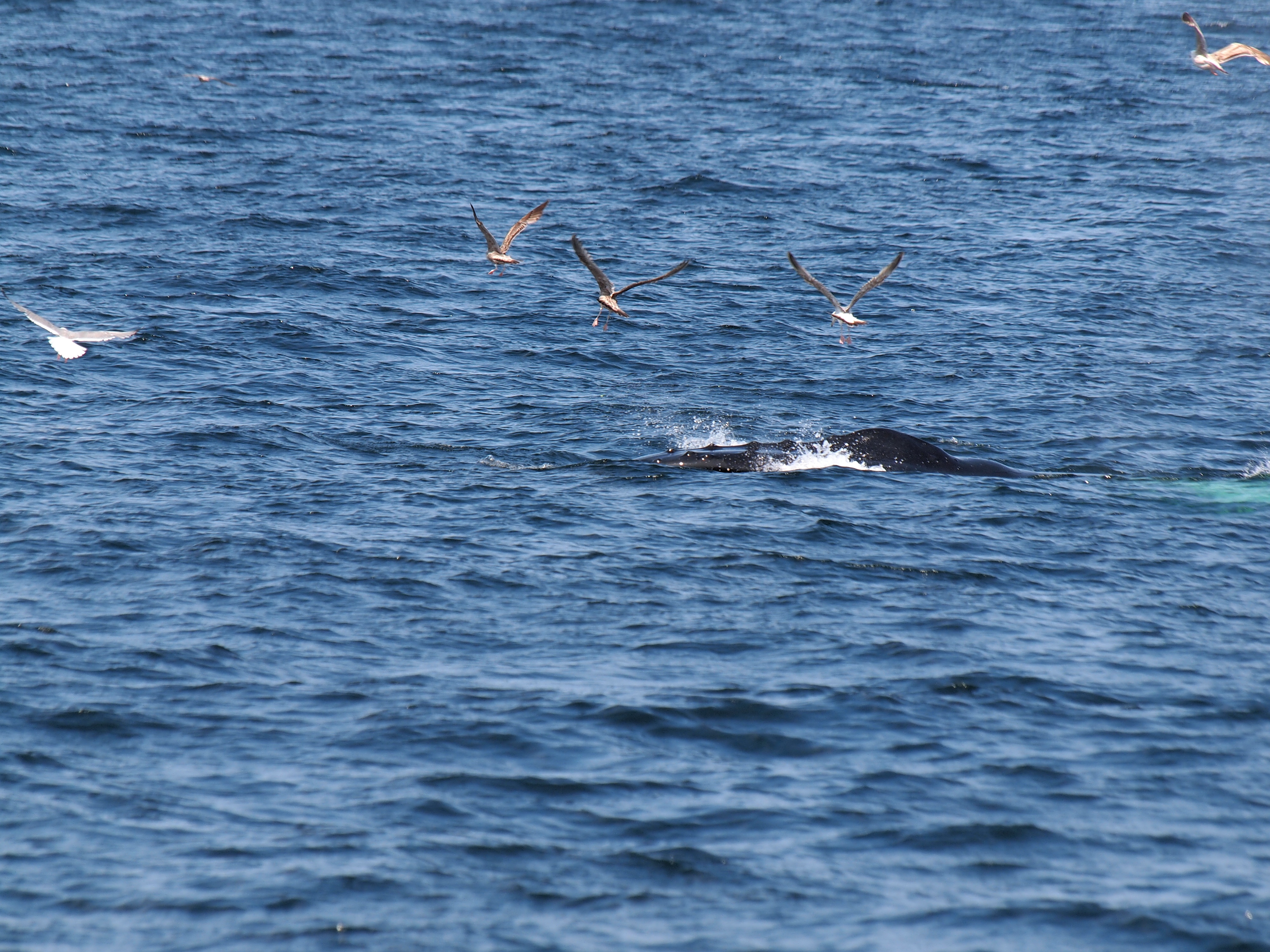 Picture #73: Whale and birds #15 Small: 1000x773, 211,044 bytes (207K), (html file) Large: 4000x3000, 4,349,614 bytes (4.1M), (html file) Copyright, Michael Meissner 2012, All rights reserved Olympus E-5 camera with Olympus 50-200mm lens and Olympus EC-14 (1.4x) f/8.0, ISO 200, 1/1000 sec, 124.0mm, auto mode, vivid color, matrix metering, IS1 (All Direction Shake IS) 35mm equivalent focal length 248.0mm, EC-14 Programs used: crop, raw therapee Taken by Michael Meissner on May 27, 2012 15:53:57 Last modified on June 02, 2012 at 11:15 |