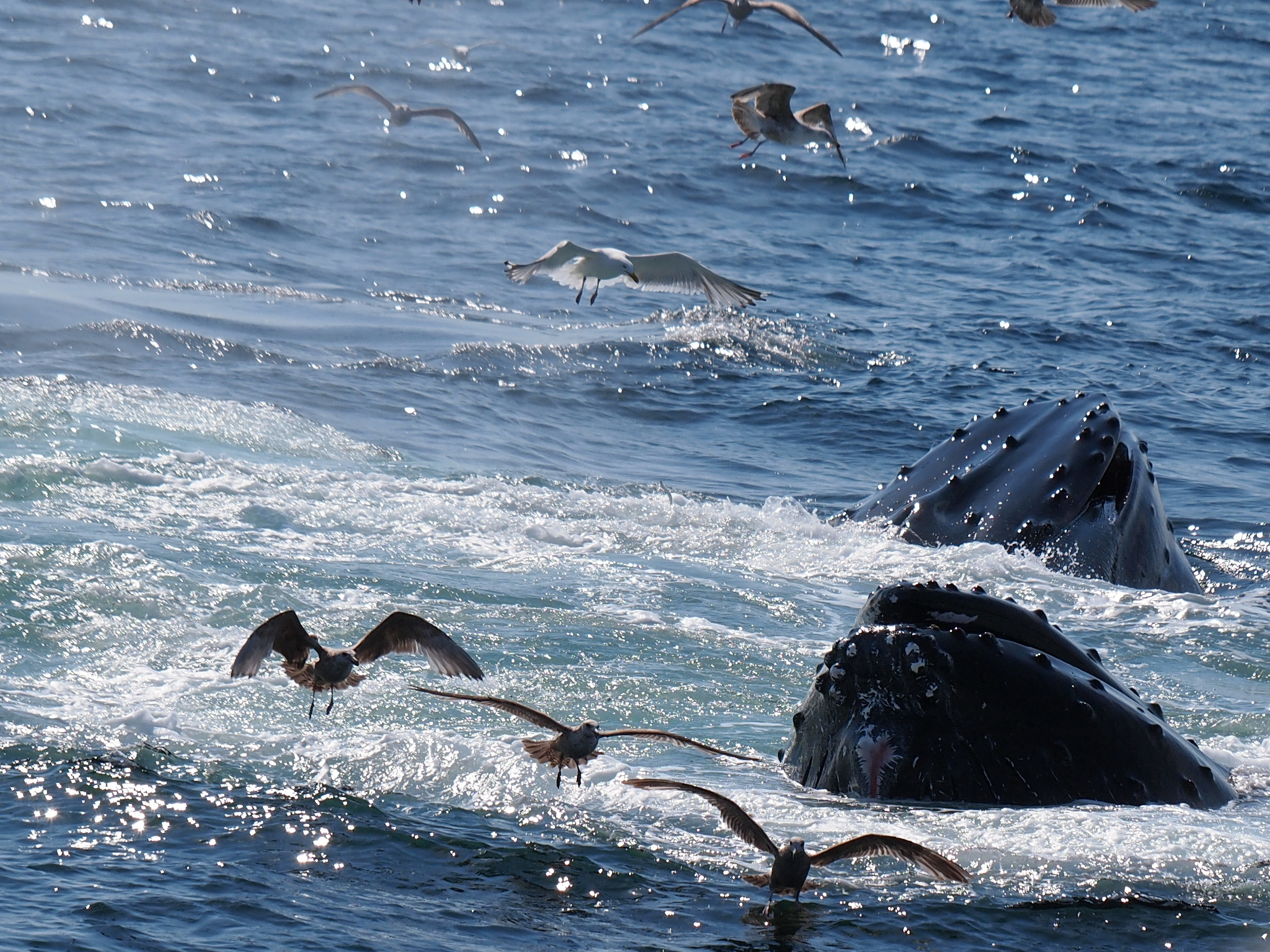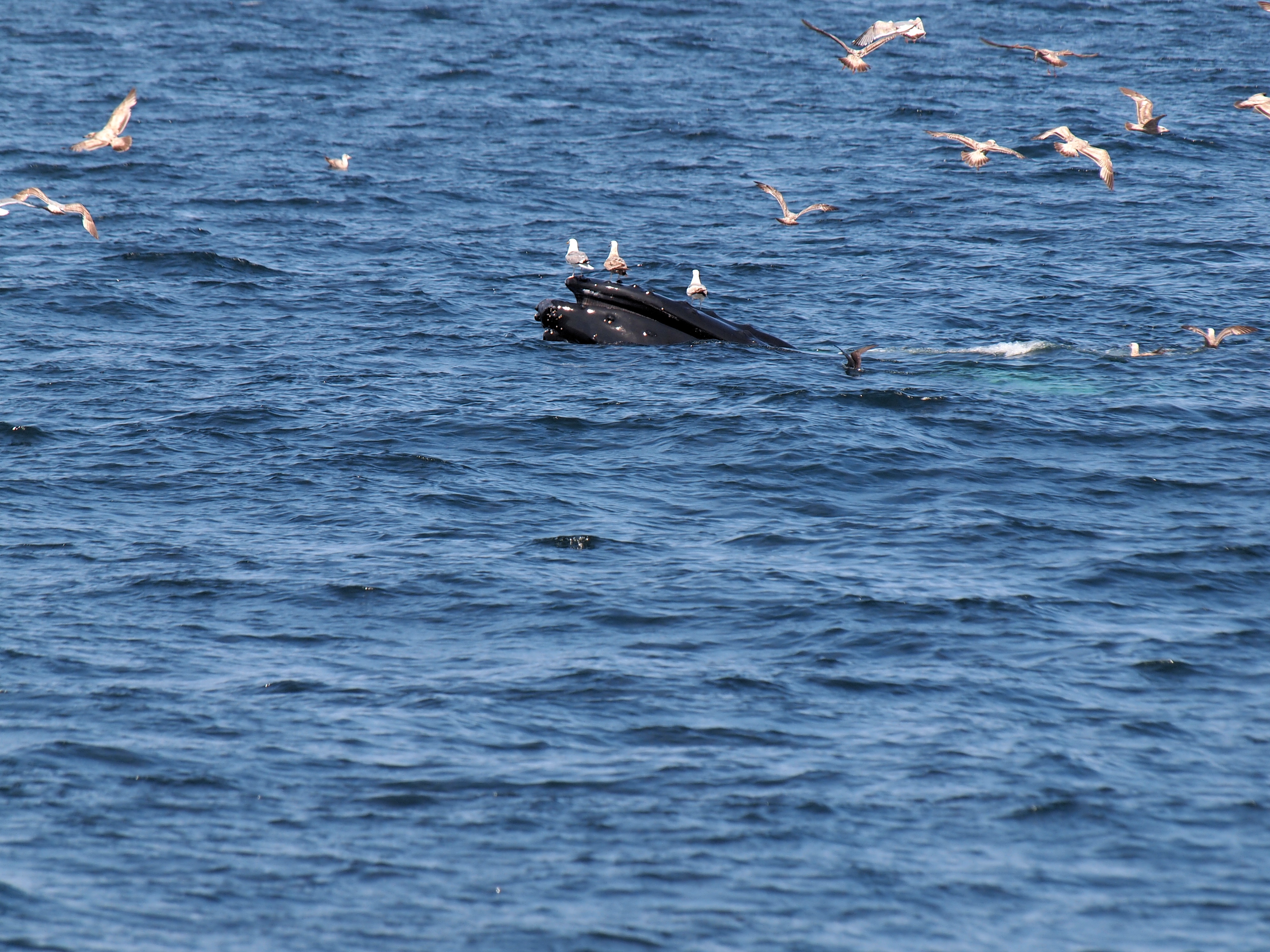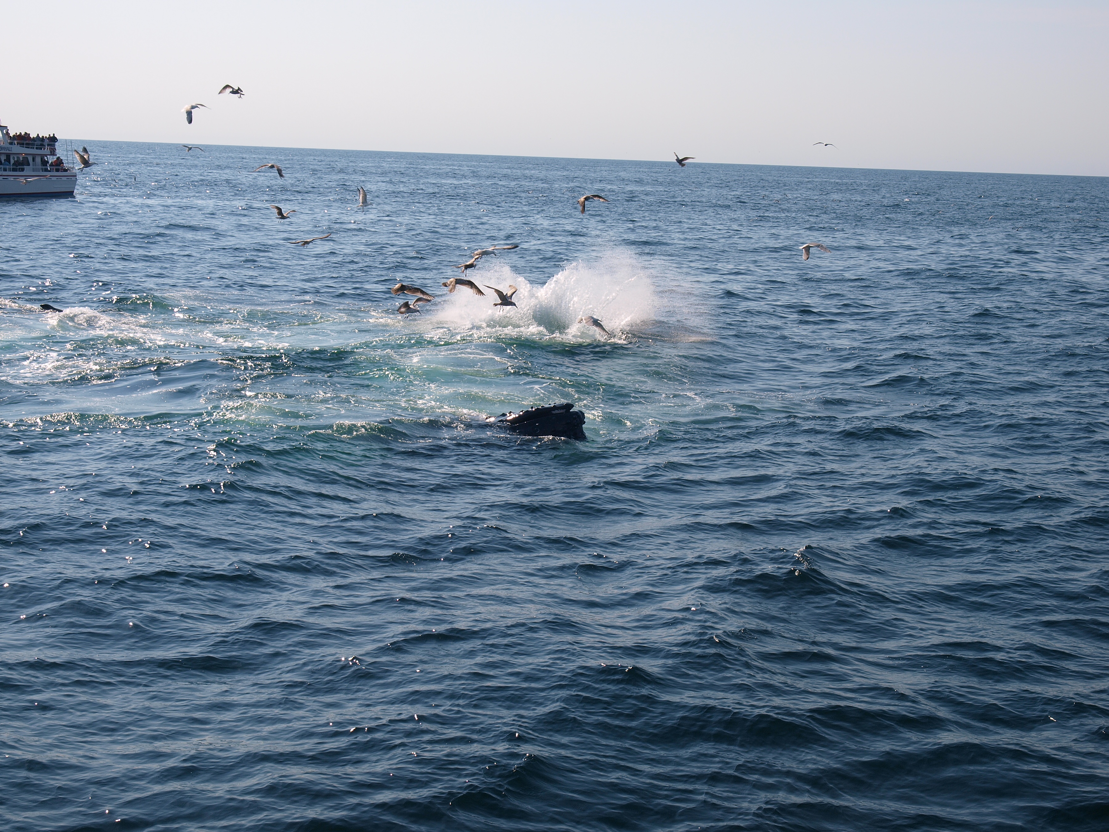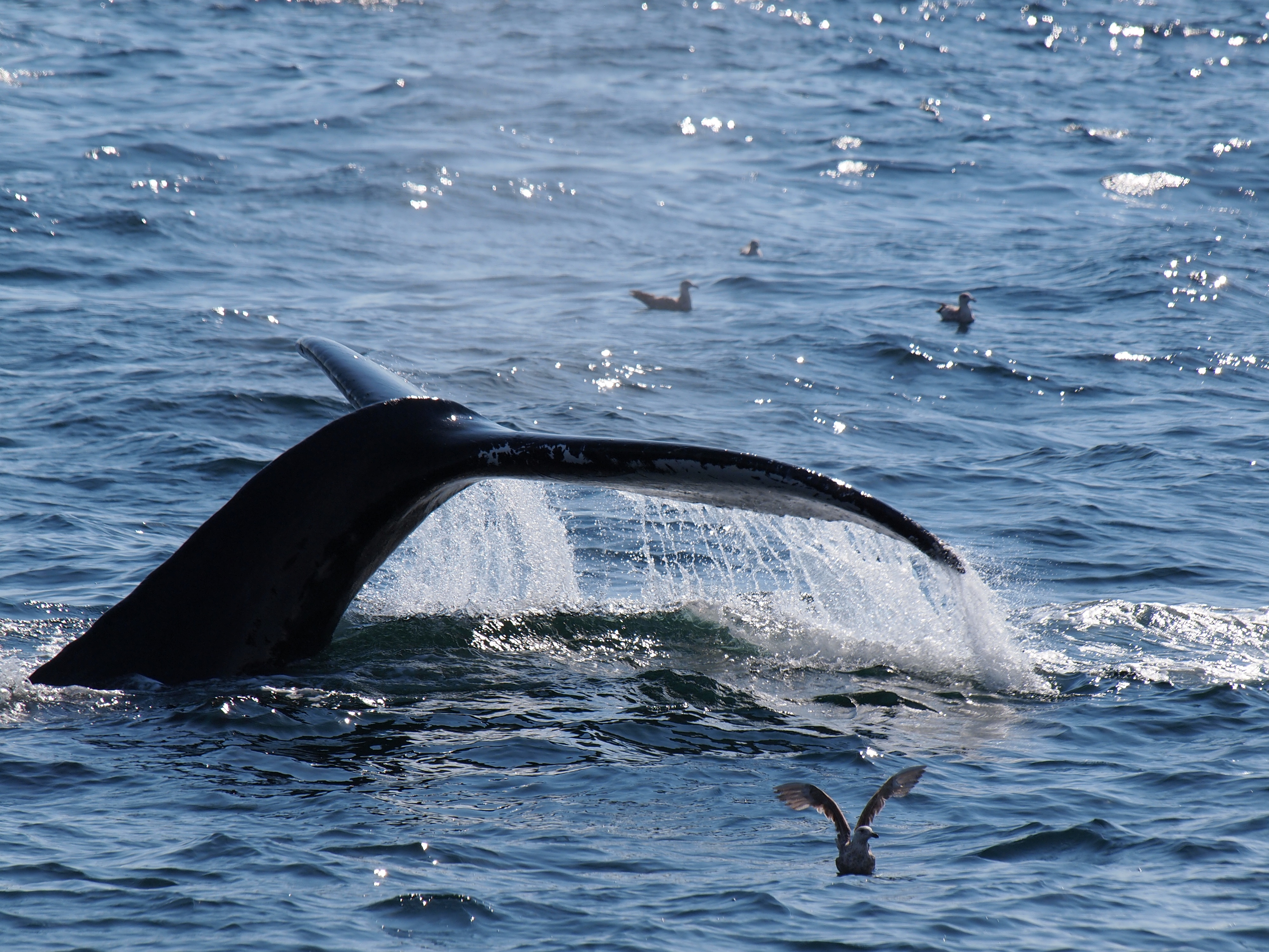 Picture #73: Whale and birds #15 Small: 1000x773, 211,044 bytes (207K), (html file) Large: 4000x3000, 4,349,614 bytes (4.1M), (html file) Copyright, Michael Meissner 2012, All rights reserved Olympus E-5 camera with Olympus 50-200mm lens and Olympus EC-14 (1.4x) f/8.0, ISO 200, 1/1000 sec, 124.0mm, auto mode, vivid color, matrix metering, IS1 (All Direction Shake IS) 35mm equivalent focal length 248.0mm, EC-14 Programs used: crop, raw therapee Taken by Michael Meissner on May 27, 2012 15:53:57 Last modified on June 02, 2012 at 11:15 |