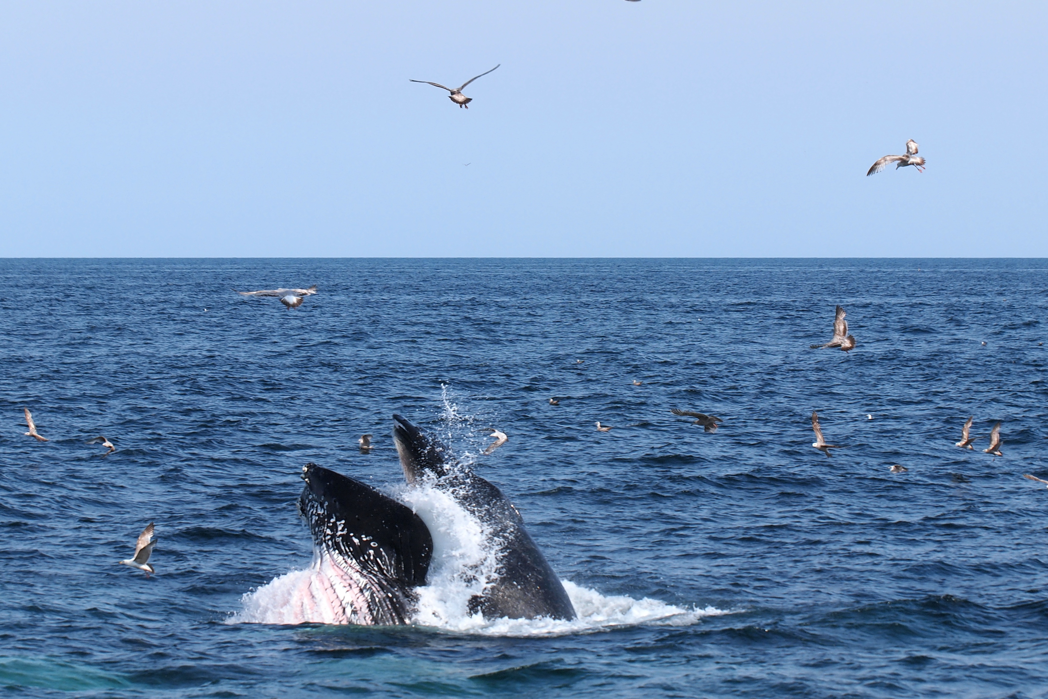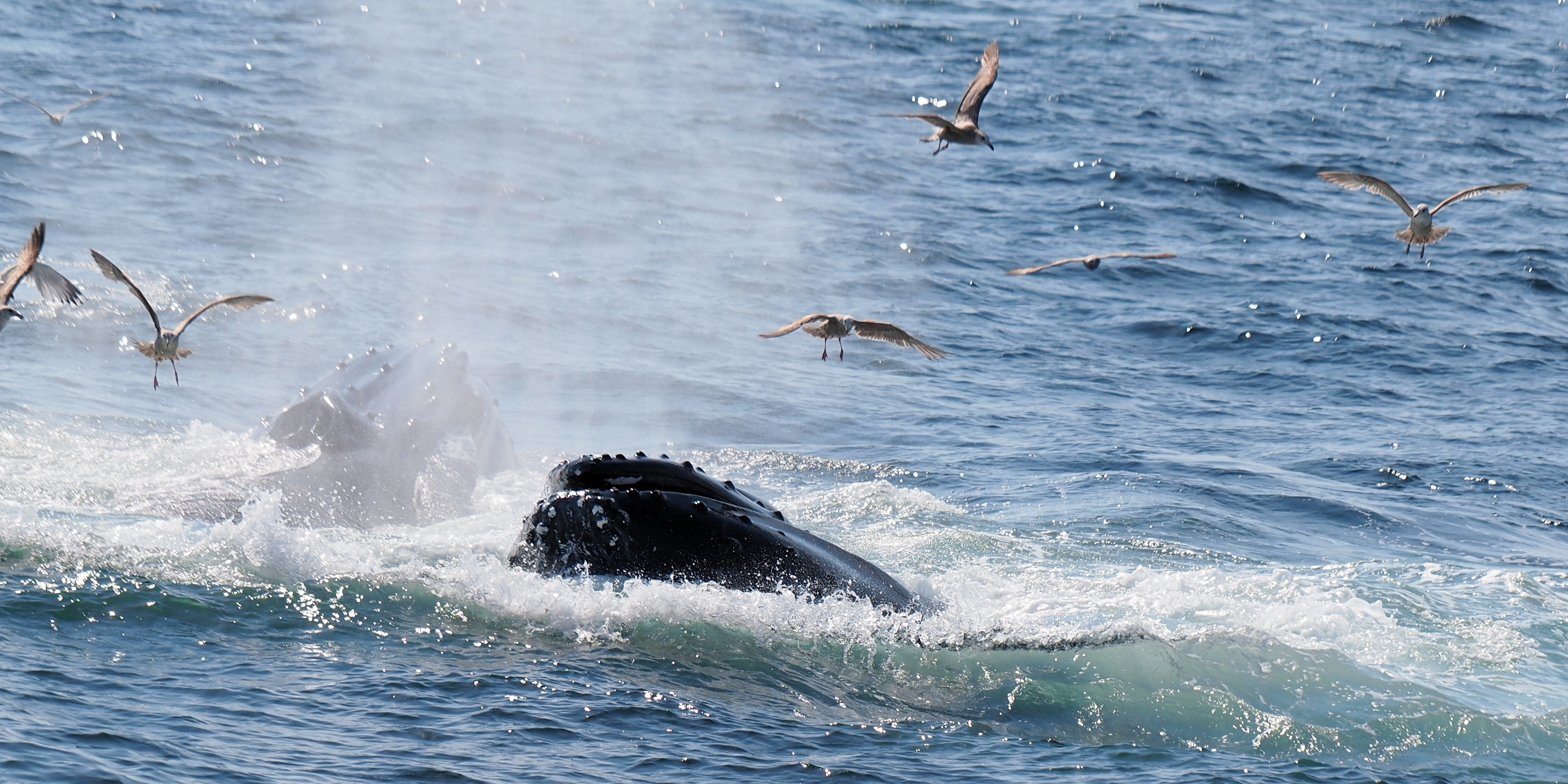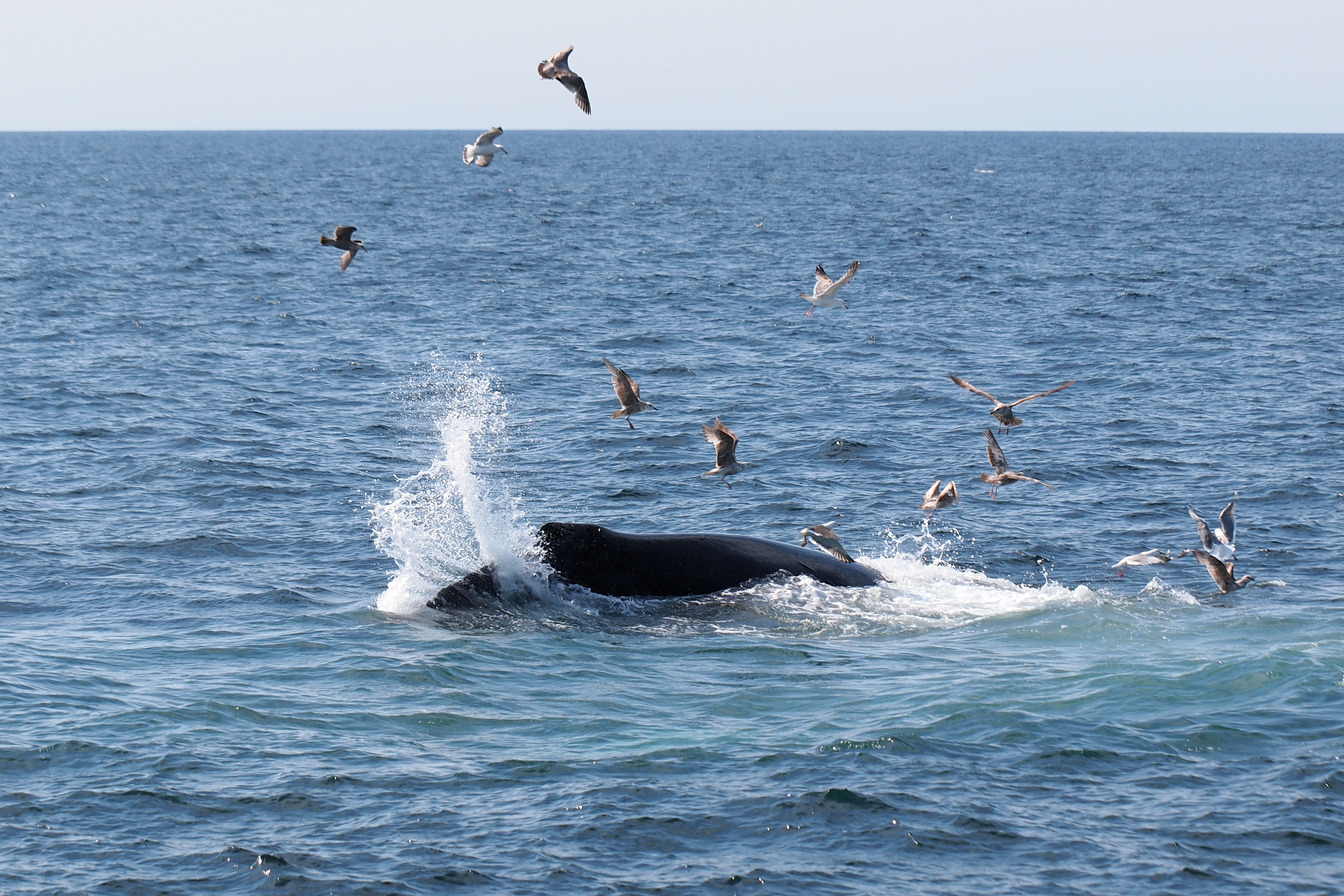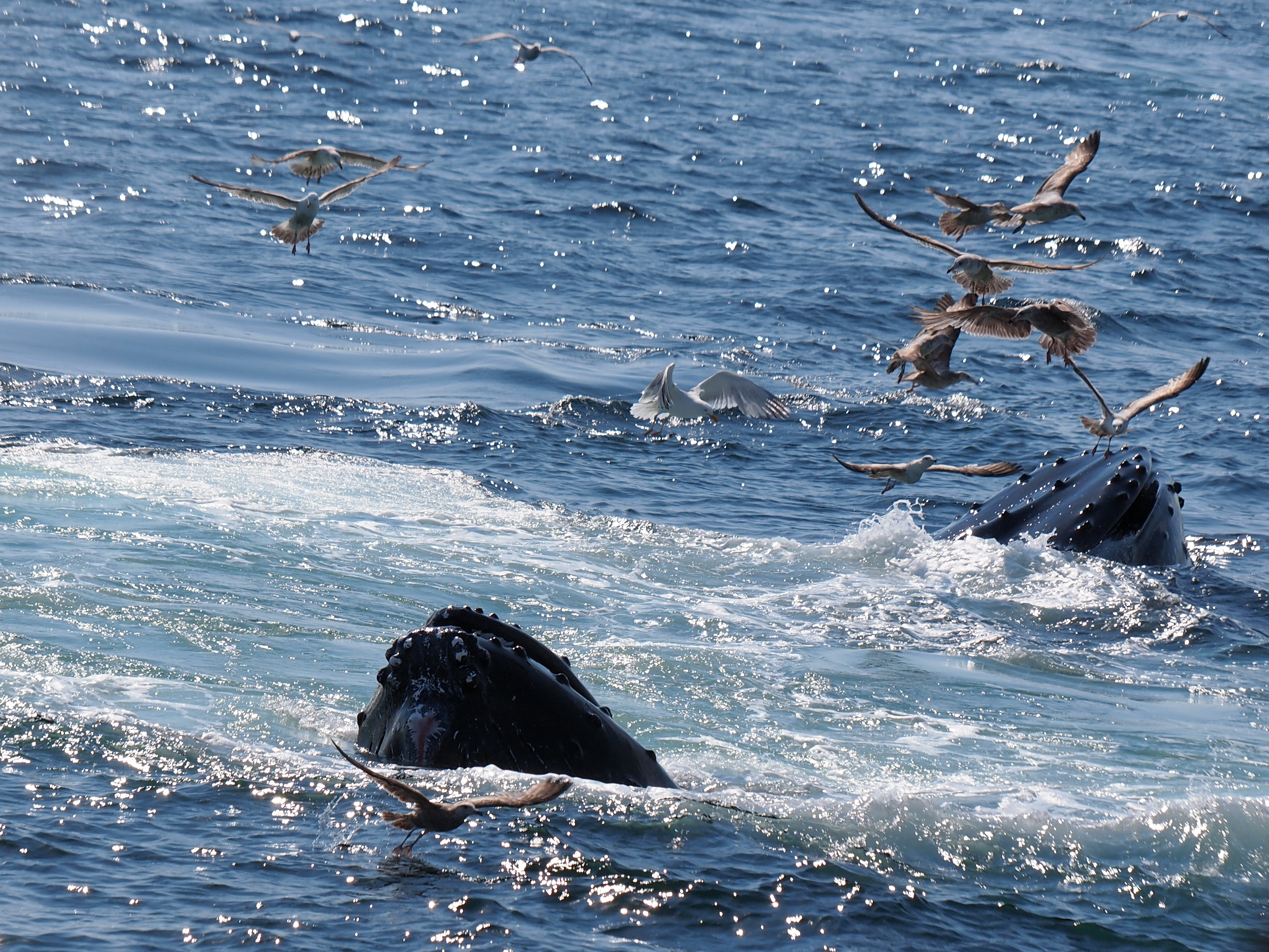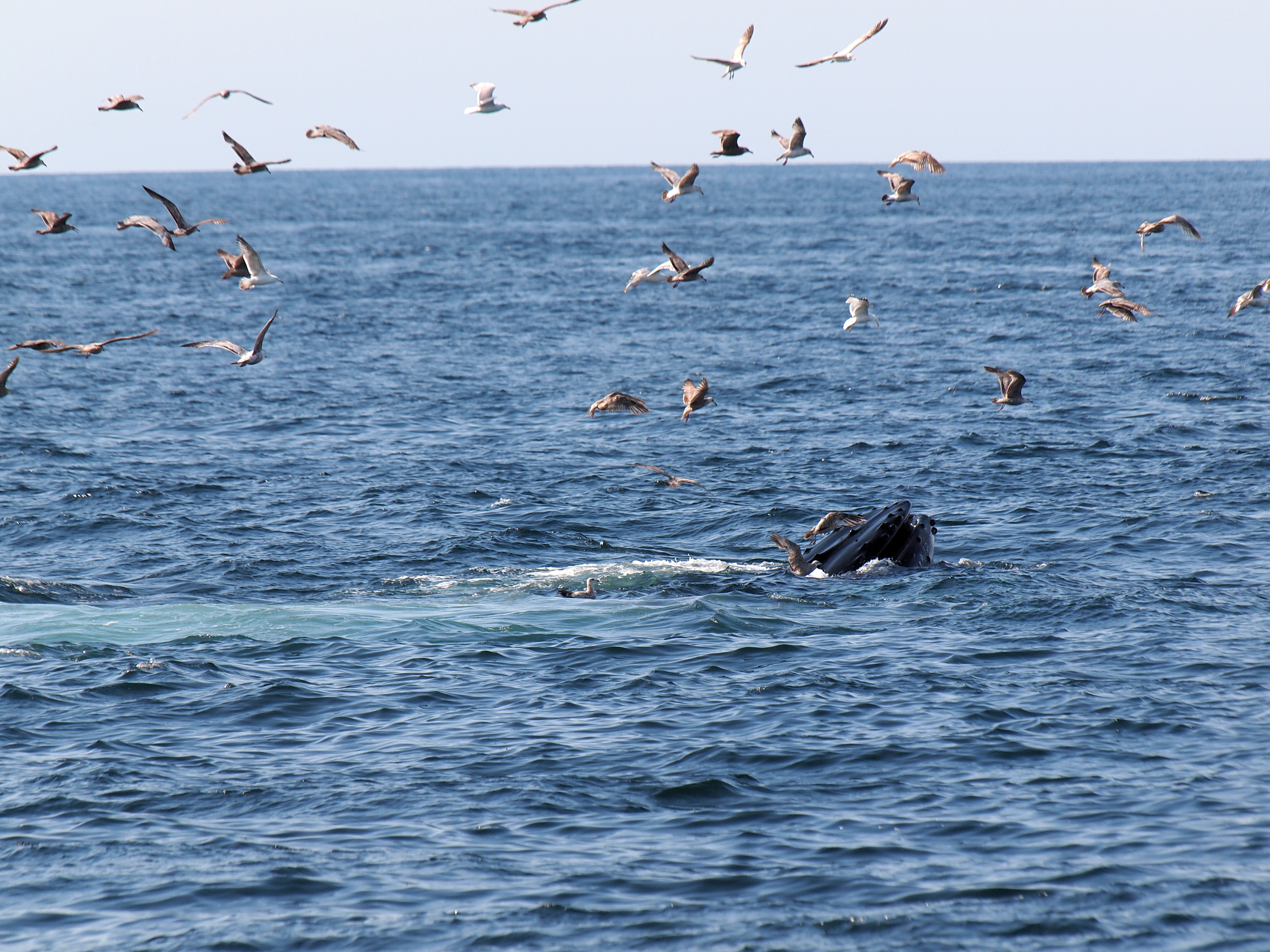 Picture #73: Whale and birds #15 Small: 1000x773, 211,044 bytes (207K), (html file) Large: 4000x3000, 4,349,614 bytes (4.1M), (html file) Copyright, Michael Meissner 2012, All rights reserved Olympus E-5 camera with Olympus 50-200mm lens and Olympus EC-14 (1.4x) f/8.0, ISO 200, 1/1000 sec, 124.0mm, auto mode, vivid color, matrix metering, IS1 (All Direction Shake IS) 35mm equivalent focal length 248.0mm, EC-14 Programs used: crop, raw therapee Taken by Michael Meissner on May 27, 2012 15:53:57 Last modified on June 02, 2012 at 11:15 |