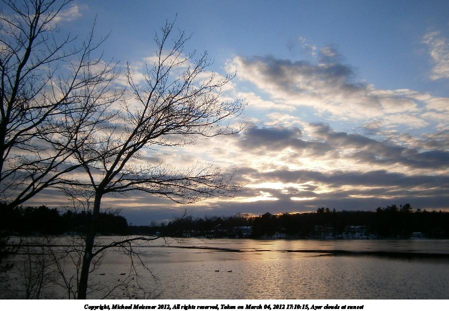 Picture #6: Ayer clouds at sunset #2 900x623, 121,506 bytes (119K), (html file) Copyright, Michael Meissner 2012, All rights reserved Olympus VG-120 camera f/2.8, ISO 80, 1/1250 sec, 4.7mm, auto mode, HQ, center weight metering 35mm equivalent focal length 26.0mm Programs used: crop, gimp, raw therapee Taken by Michael Meissner on March 04, 2012 17:10:15 Last modified on March 05, 2012 at 10:46 This picture is one of my favorites. |