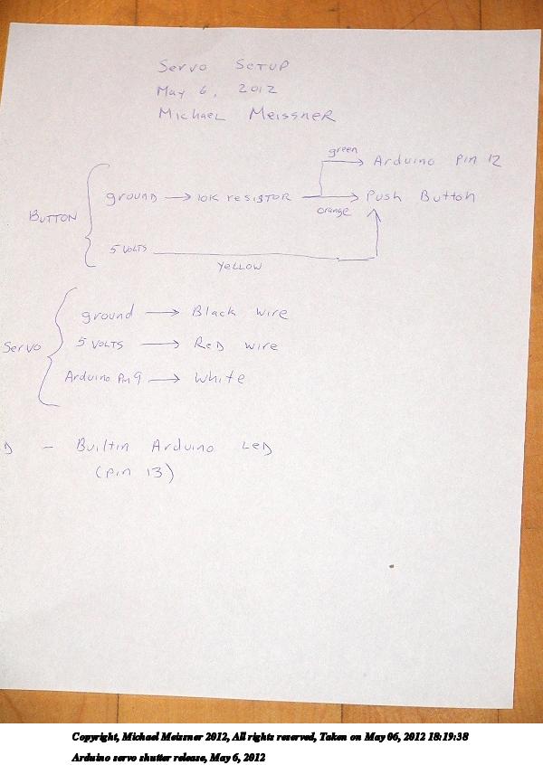 Picture #12: Arduino servo shutter release, May 6, 2012 800x623, 100,529 bytes (99K), (html file) Copyright, Michael Meissner 2012, All rights reserved Olympus C-2100UZ camera f/2.8, ISO 100, flash, 1/60 sec, 13.4mm, auto mode, SHQ, cloudy, matrix metering 35mm equivalent focal length 74.0mm Programs used: crop, raw therapee Taken by Michael Meissner on May 06, 2012 18:07:51 Last modified on May 06, 2012 at 19:40 |