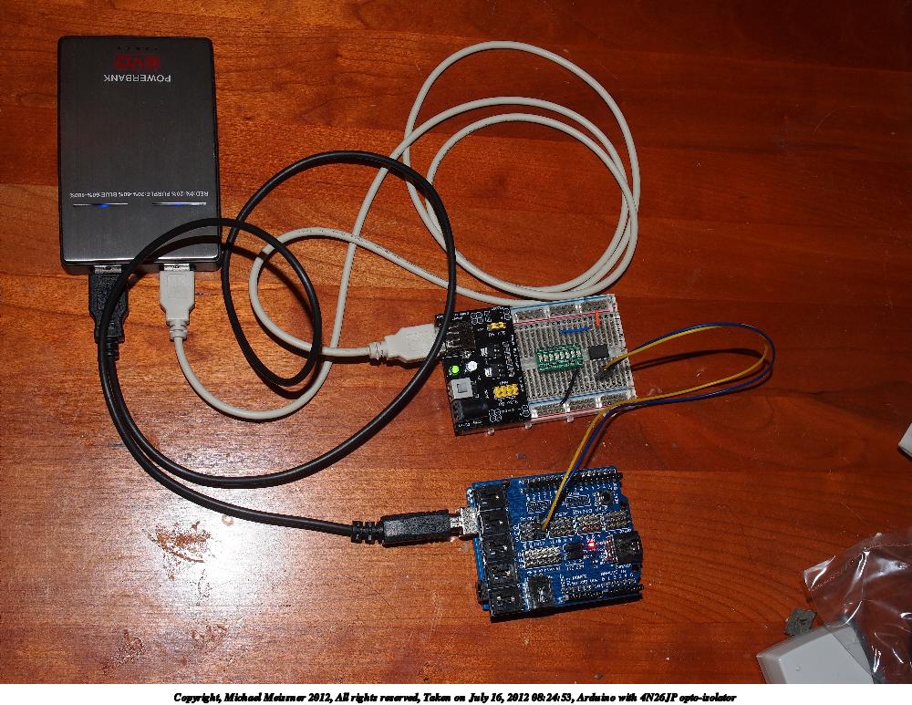 Picture #10: Arduino with 4N26JP opto-isolator 1000x773, 188,265 bytes (184K), (html file) Copyright, Michael Meissner 2012, All rights reserved Olympus E-5 camera with Olympus 14-54mm f/2.8-3.5 lens f/8.0, ISO 200, flash (+0.3 flash compensation), 1/60 sec, 23.0mm, aperture priority, vivid color, matrix metering, IS1 (All Direction Shake IS) 35mm equivalent focal length 46.0mm Extra equipment used: pop-up flash Programs used: crop, raw therapee Taken by Michael Meissner on July 16, 2012 08:24:53 Last modified on July 16, 2012 at 08:49 |
