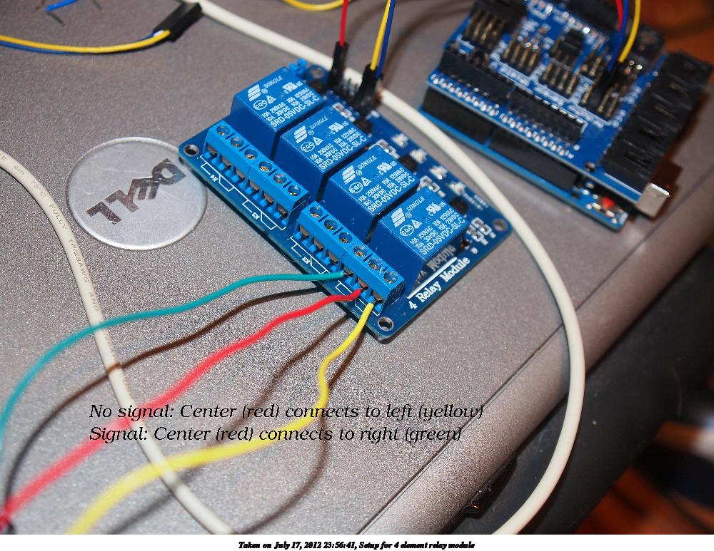 Picture #7: Setup for 4 element relay module #2 1000x773, 183,930 bytes (180K), (html file) Olympus E-5 camera with Olympus 14-54mm f/2.8-3.5 lens f/3.1, ISO 200, flash (+0.3 flash compensation), 1/60 sec, 28.0mm, auto mode, vivid color, matrix metering, IS1 (All Direction Shake IS) 35mm equivalent focal length 56.0mm Extra equipment used: pop-up flash Programs used: crop, gimp, raw therapee Taken by Michael Meissner on July 17, 2012 23:56:41 Last modified on July 18, 2012 at 08:15 |