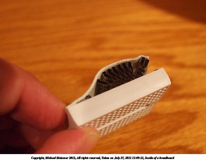 Picture #4: Inside of a breadboard #2 800x623, 70,021 bytes (69K), (html file) Copyright, Michael Meissner 2012, All rights reserved Olympus E-5 camera with Olympus 14-54mm f/2.8-3.5 lens f/2.8, ISO 1250, 1/60 sec, 17.0mm, auto mode, vivid color, matrix metering, IS1 (All Direction Shake IS) 35mm equivalent focal length 34.0mm Programs used: crop, raw therapee Taken by Michael Meissner on July 27, 2012 11:11:00 Last modified on July 27, 2012 at 11:30 |