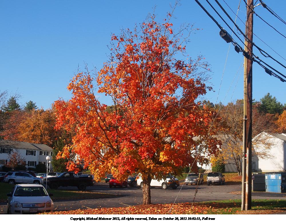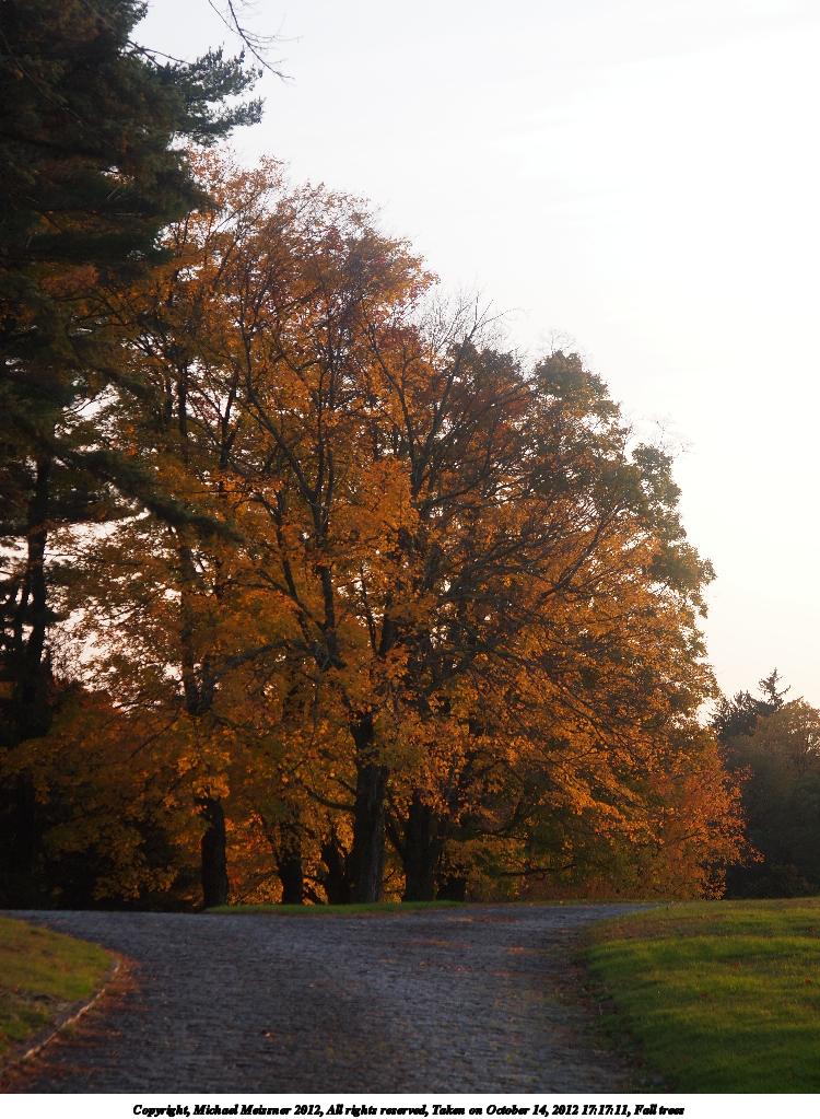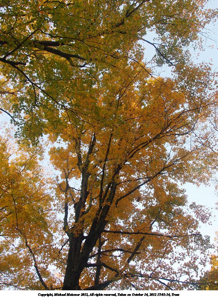 Picture #26: Fall tree Thumb: 375x500, 45,023 bytes (44K) Small: 750x1023, 150,070 bytes (147K), (html file) Copyright, Michael Meissner 2012, All rights reserved Olympus E-5 camera with Olympus 14-54mm f/2.8-3.5 lens f/7.1, ISO 200, 1/500 sec, 14.0mm, auto mode, vivid color, matrix metering, IS1 (All Direction Shake IS) 35mm equivalent focal length 28.0mm Programs used: crop, raw therapee, rotate left Taken by Michael Meissner on October 20, 2012 16:04:19 Last modified on June 11, 2013 at 22:25 This picture is one of my favorites. |