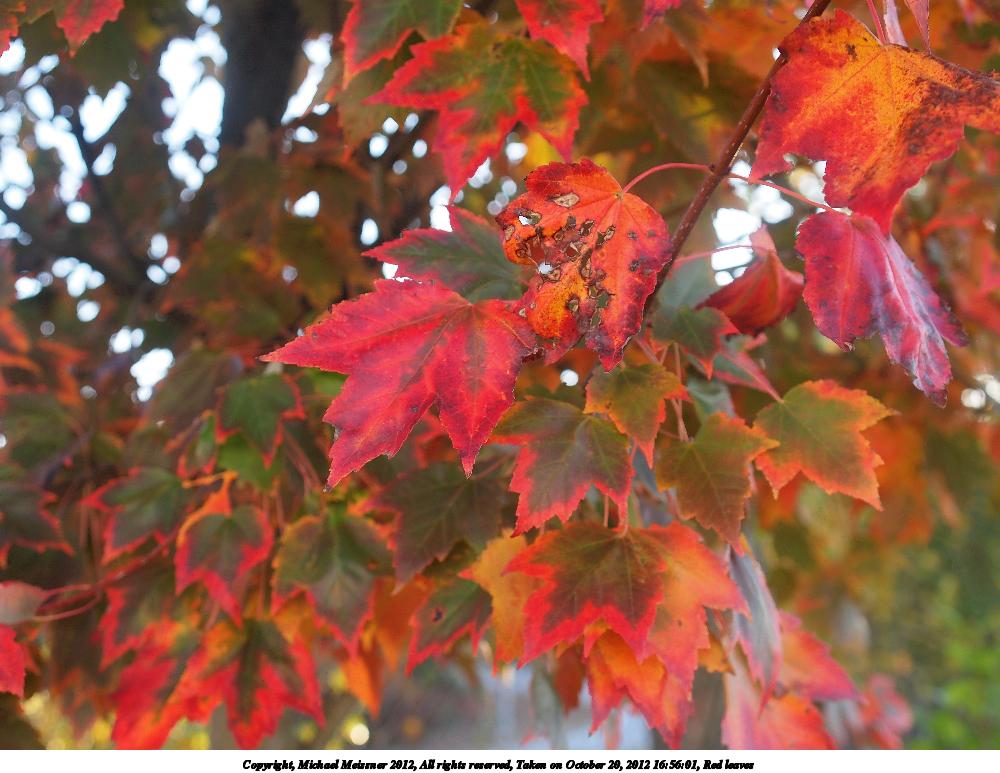 Picture #24: Red leaves Thumb: 500x375, 88,304 bytes (87K) Small: 1000x773, 307,242 bytes (301K), (html file) Copyright, Michael Meissner 2012, All rights reserved Olympus E-5 camera with Olympus 14-54mm f/2.8-3.5 lens f/6.3, ISO 200, 1/320 sec, 46.0mm, auto mode, vivid color, matrix metering, IS1 (All Direction Shake IS) 35mm equivalent focal length 92.0mm Programs used: crop, raw therapee Taken by Michael Meissner on October 20, 2012 15:59:10 Last modified on June 11, 2013 at 22:24 |