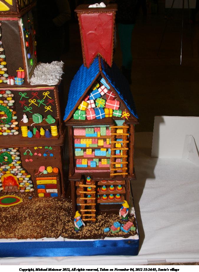 Picture #50: Gingerbread town 900x698, 117,562 bytes (115K), (html file) Copyright, Michael Meissner 2012, All rights reserved Olympus E-3 camera with Olympus 11-22mm f/2.8-3.5 lens f/5.6, ISO 100, Metz 48 flash (+0.3 flash compensation), 1/60 sec, 16.0mm, aperture priority, vivid color, matrix metering, IS1 (All Direction Shake IS), noise filter low 35mm equivalent focal length 32.0mm Taken by Michael Meissner on November 04, 2012 15:16:01 Last modified on February 03, 2013 at 19:35 |