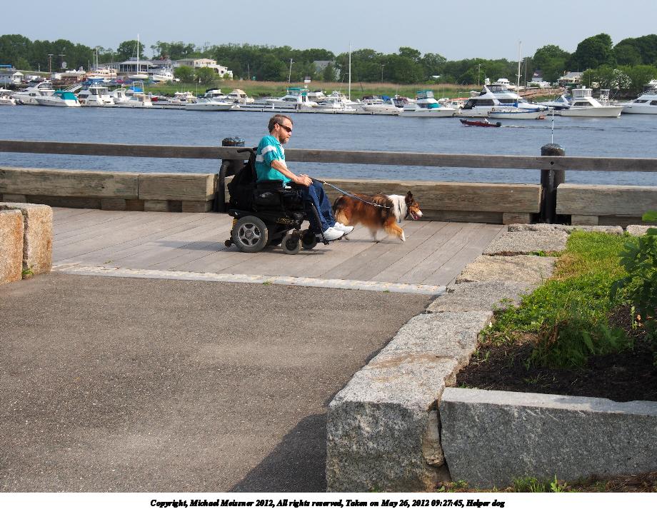 Picture #7: Helper dog 920x713, 169,288 bytes (166K), (html file) Copyright, Michael Meissner 2012, All rights reserved Olympus E-M5-I camera with Olympus-m43 12-50mm f/3.5-6.3 lens f/10.0, ISO 200, 1/250 sec, 33.0mm, auto mode, vivid color, HQ, matrix metering, IS1 (All Direction Shake IS), noise reduction auto 35mm equivalent focal length 66.0mm Programs used: crop, raw therapee Taken by Michael Meissner on May 26, 2012 09:27:45 Last modified on January 13, 2013 at 20:47 |