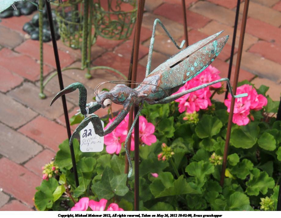 Picture #28: Brass grasshopper 920x713, 112,614 bytes (110K), (html file) Copyright, Michael Meissner 2012, All rights reserved Olympus E-M5-I camera with Olympus-m43 14-150mm f/4.0-5.6 lens f/11.0, ISO 200, 1/100 sec, 45.0mm, aperture priority, vivid color, HQ, matrix metering, IS1 (All Direction Shake IS), noise reduction auto 35mm equivalent focal length 90.0mm Programs used: crop, raw therapee Taken by Michael Meissner on May 26, 2012 10:02:00 Last modified on January 13, 2013 at 20:58 |