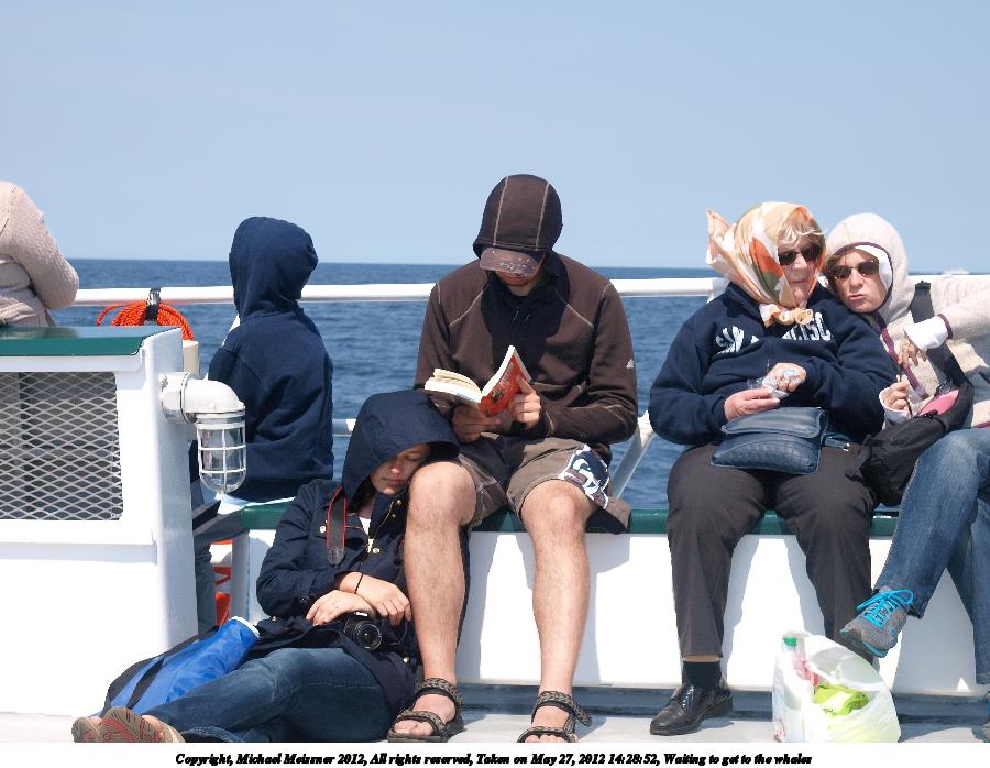 Picture #110: Waiting to get to the whales 900x698, 111,568 bytes (109K), (html file) Copyright, Michael Meissner 2012, All rights reserved Olympus E-3 camera with Olympus 14-54mm f/2.8-3.5 lens f/7.1, ISO 100, 1/400 sec, 25.0mm, auto mode, vivid color, matrix metering, IS1 (All Direction Shake IS), noise filter low 35mm equivalent focal length 50.0mm Programs used: crop, raw therapee Taken by Michael Meissner on May 27, 2012 14:25:47 Last modified on June 02, 2012 at 10:57 |