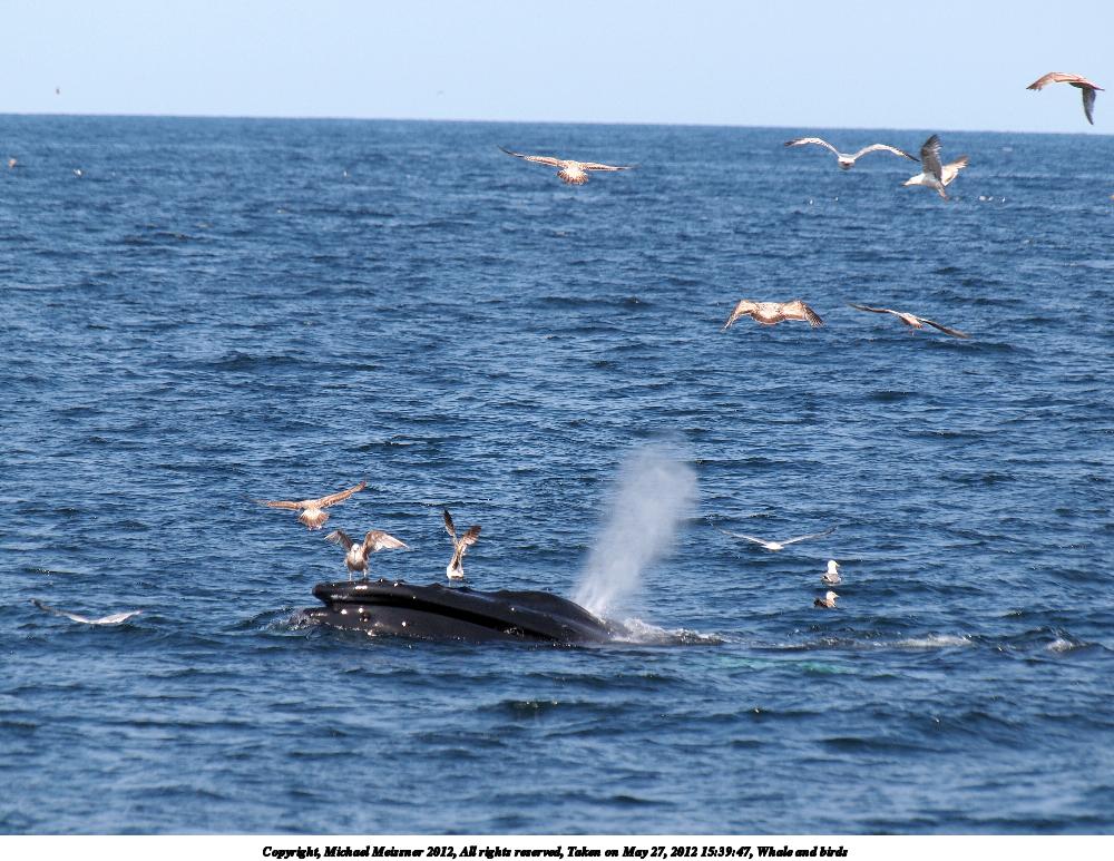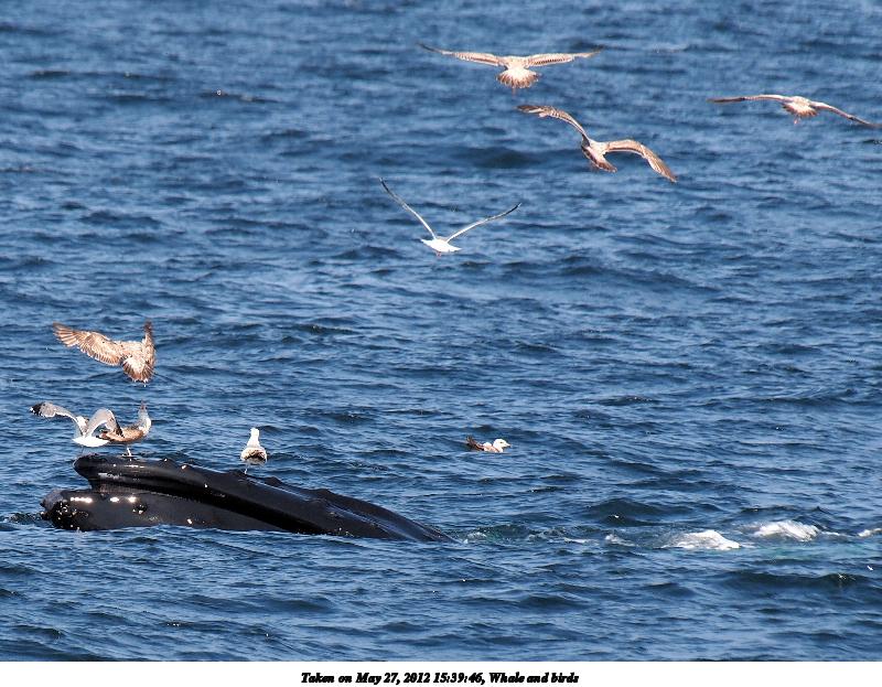 Picture #24: Whale and birds #31 1000x773, 171,053 bytes (168K), (html file) Copyright, Michael Meissner 2012, All rights reserved Olympus E-5 camera with Olympus 50-200mm lens and Olympus EC-14 (1.4x) f/7.1, ISO 200, 1/640 sec, 283.0mm, auto mode, vivid color, matrix metering, IS1 (All Direction Shake IS) 35mm equivalent focal length 567.0mm, EC-14 Programs used: crop, raw therapee Taken by Michael Meissner on May 27, 2012 16:33:32 Last modified on June 02, 2012 at 21:07 |
