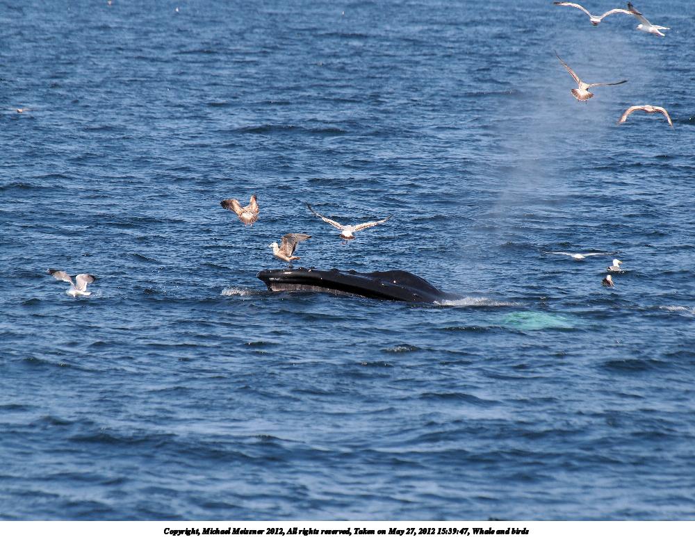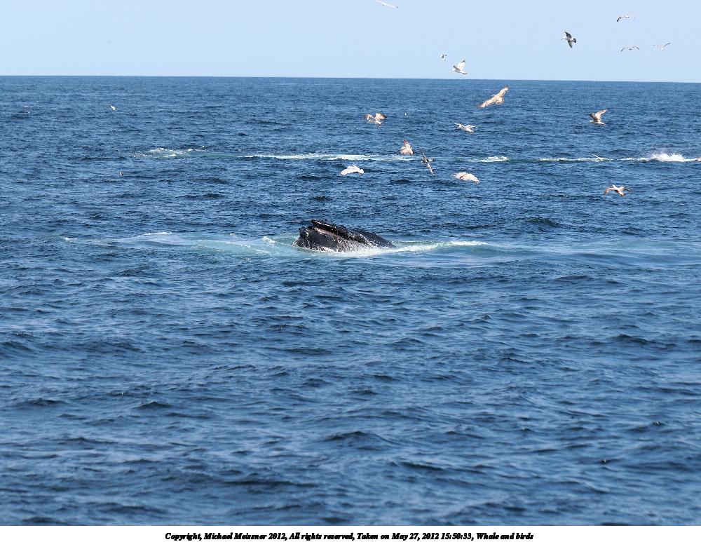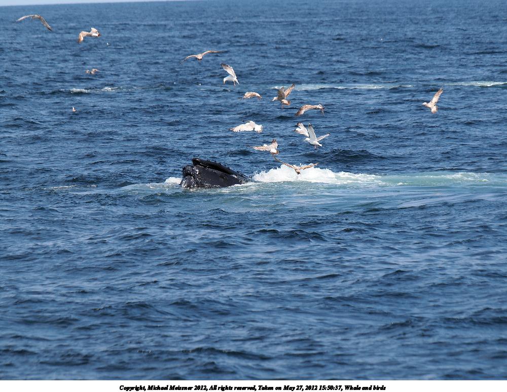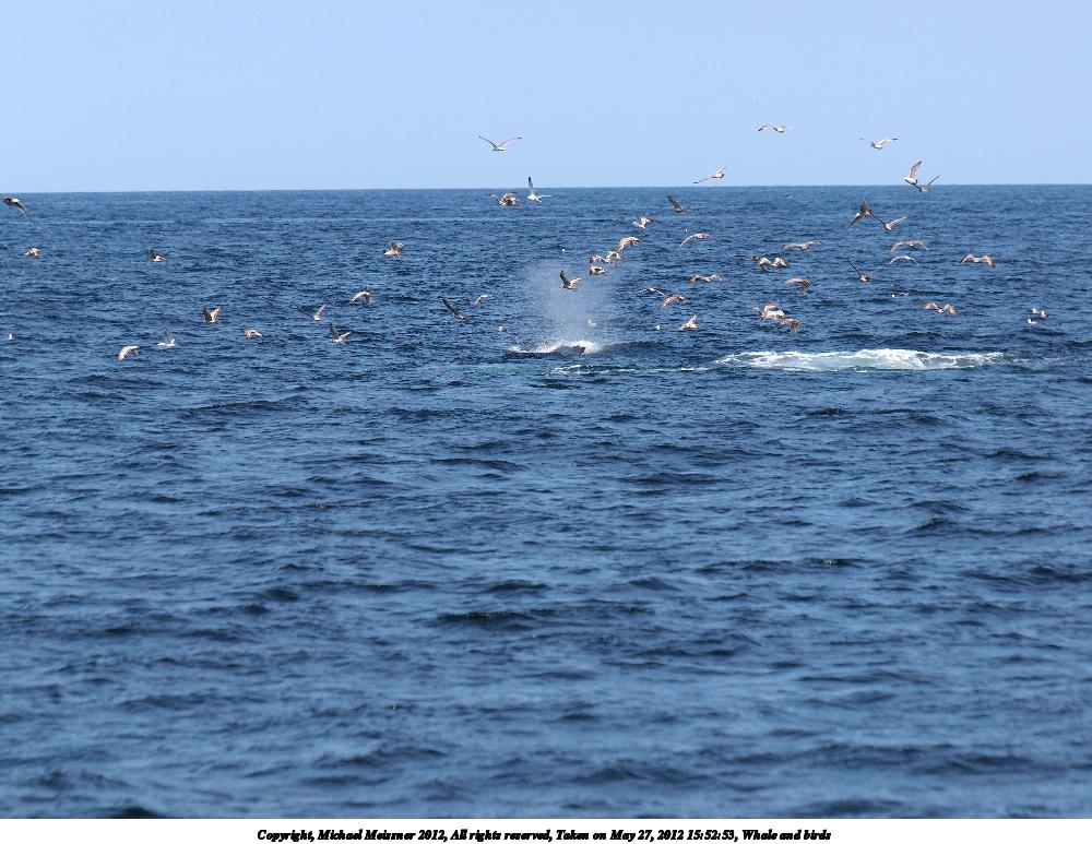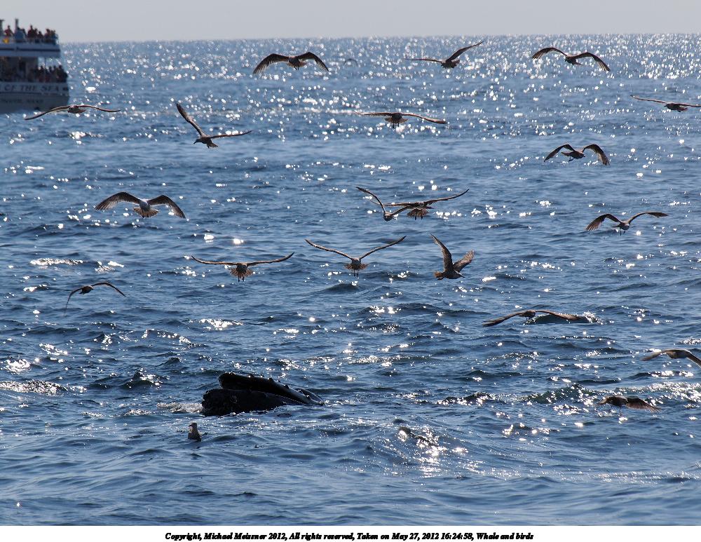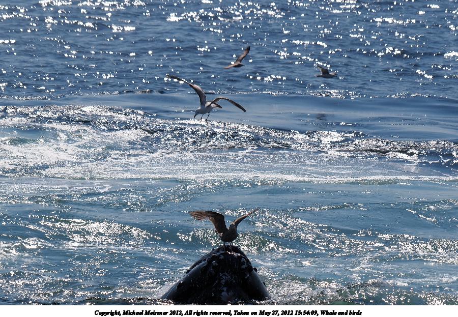 Picture #73: Whale and birds #15 1000x773, 211,044 bytes (207K), (html file) Copyright, Michael Meissner 2012, All rights reserved Olympus E-5 camera with Olympus 50-200mm lens and Olympus EC-14 (1.4x) f/8.0, ISO 200, 1/1000 sec, 124.0mm, auto mode, vivid color, matrix metering, IS1 (All Direction Shake IS) 35mm equivalent focal length 248.0mm, EC-14 Programs used: crop, raw therapee Taken by Michael Meissner on May 27, 2012 15:53:57 Last modified on June 02, 2012 at 11:15 |