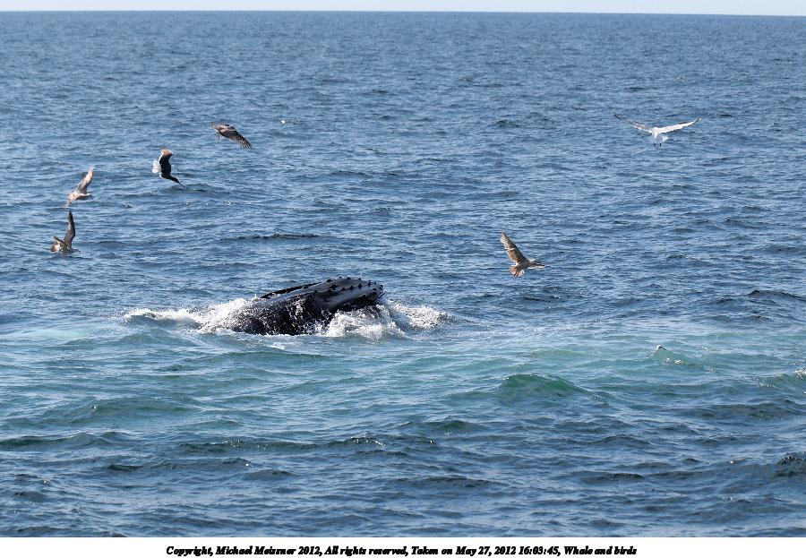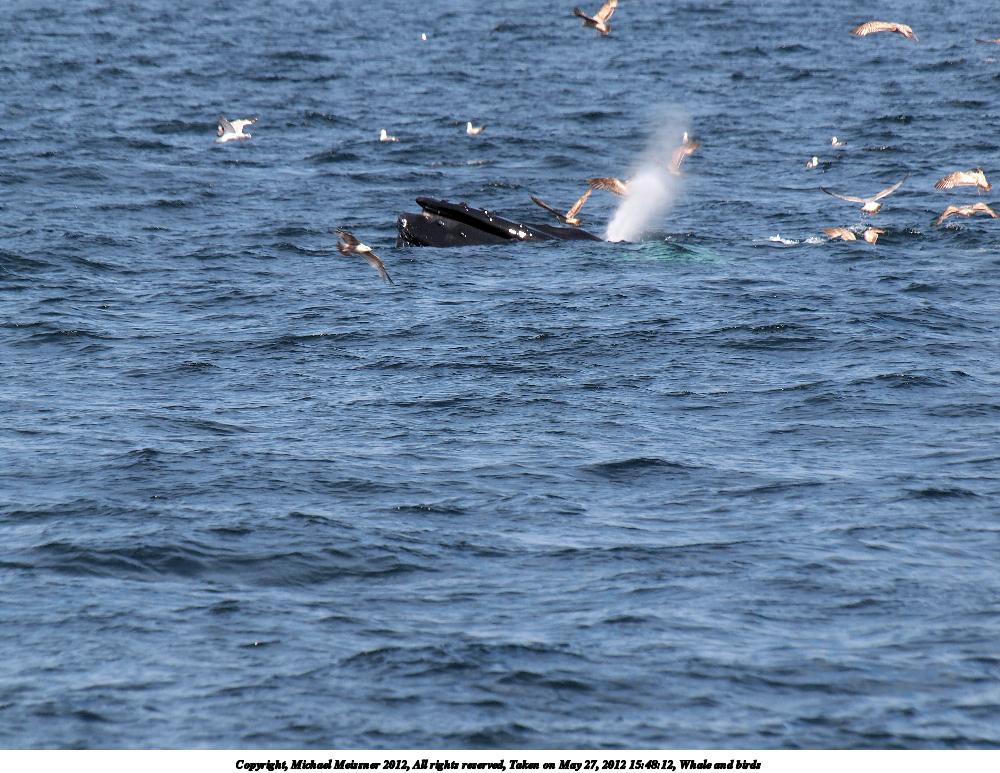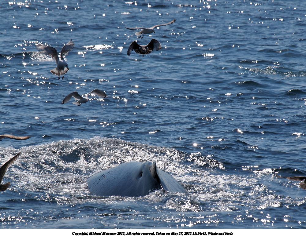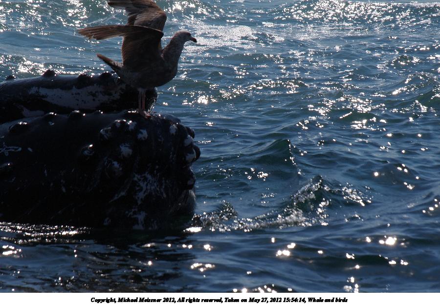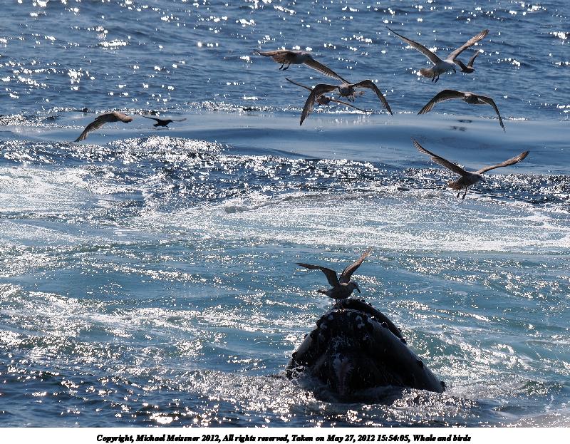 Picture #81: Whale and birds #11 1000x773, 145,627 bytes (143K), (html file) Copyright, Michael Meissner 2012, All rights reserved Olympus E-5 camera with Olympus 50-200mm lens and Olympus EC-14 (1.4x) f/7.1, ISO 200, 1/800 sec, 174.0mm, auto mode, vivid color, matrix metering, IS1 (All Direction Shake IS) 35mm equivalent focal length 349.0mm, EC-14 Programs used: crop, raw therapee Taken by Michael Meissner on May 27, 2012 15:52:53 Last modified on June 02, 2012 at 11:05 |