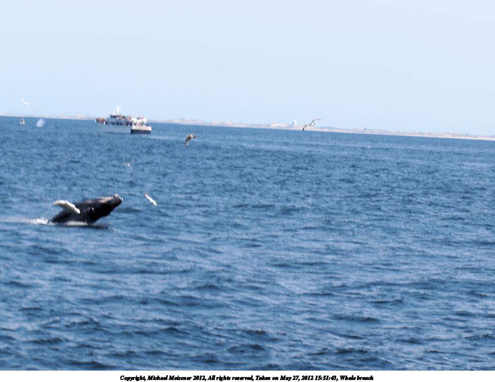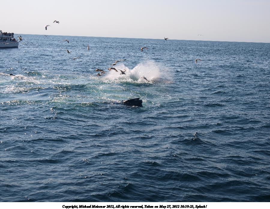 Picture #83: Whale breach 1000x773, 101,679 bytes (100K), (html file) Copyright, Michael Meissner 2012, All rights reserved Olympus E-5 camera with Olympus 50-200mm lens and Olympus EC-14 (1.4x) f/6.3, ISO 200, 1/500 sec, 90.0mm, auto mode, vivid color, matrix metering, IS1 (All Direction Shake IS) 35mm equivalent focal length 180.0mm, EC-14 Programs used: crop, raw therapee Taken by Michael Meissner on May 27, 2012 15:51:43 Last modified on June 02, 2012 at 11:04 Unfortunately this out of focus shot is the only one I got of the whale breach. |