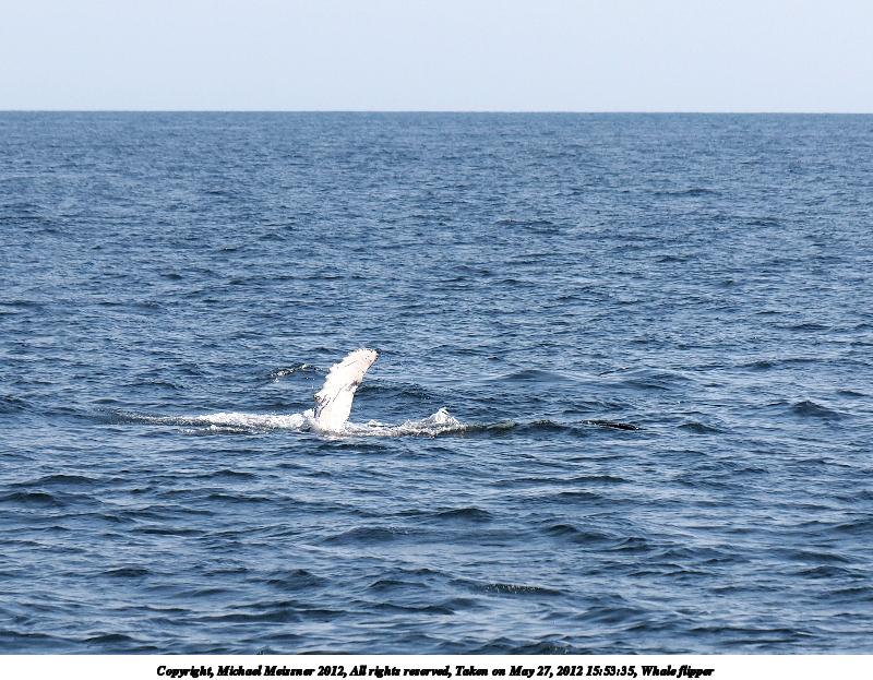 Picture #28: Whale flipper #2 1000x773, 189,612 bytes (186K), (html file) Copyright, Michael Meissner 2012, All rights reserved Olympus E-5 camera with Olympus 50-200mm lens and Olympus EC-14 (1.4x) f/6.3, ISO 200, 1/640 sec, 136.0mm, auto mode, vivid color, matrix metering, IS1 (All Direction Shake IS) 35mm equivalent focal length 272.0mm, EC-14 Programs used: crop, raw therapee Taken by Michael Meissner on May 27, 2012 16:30:41 Last modified on June 02, 2012 at 21:06 |