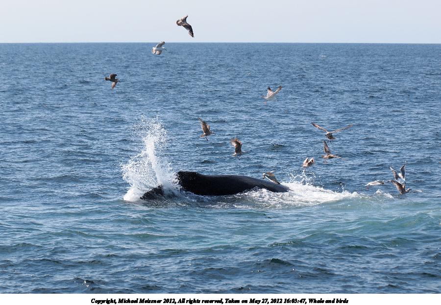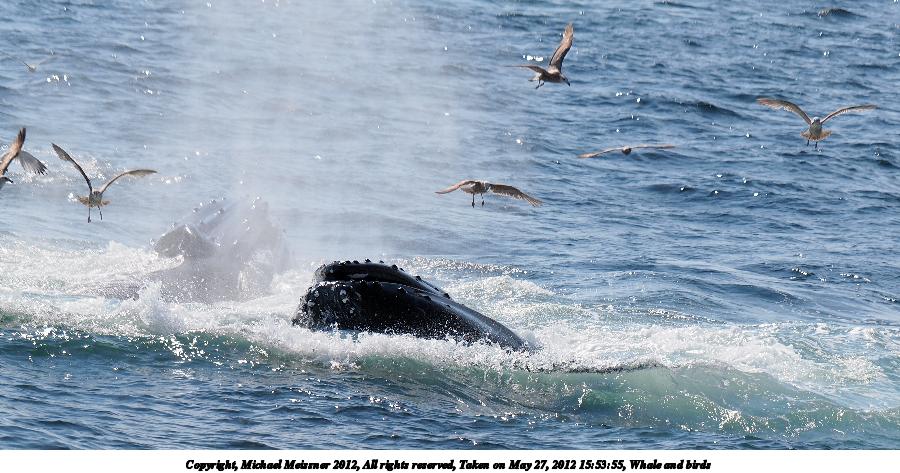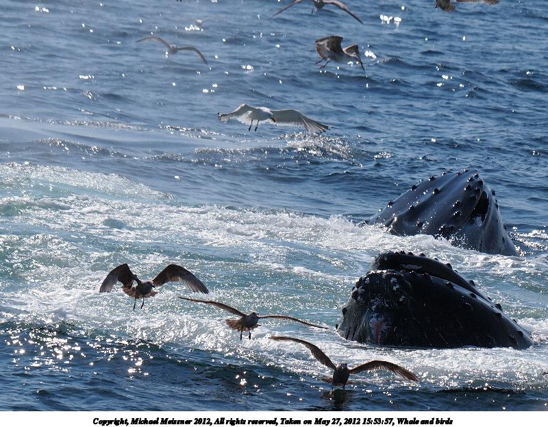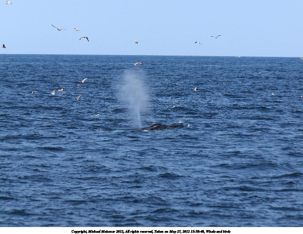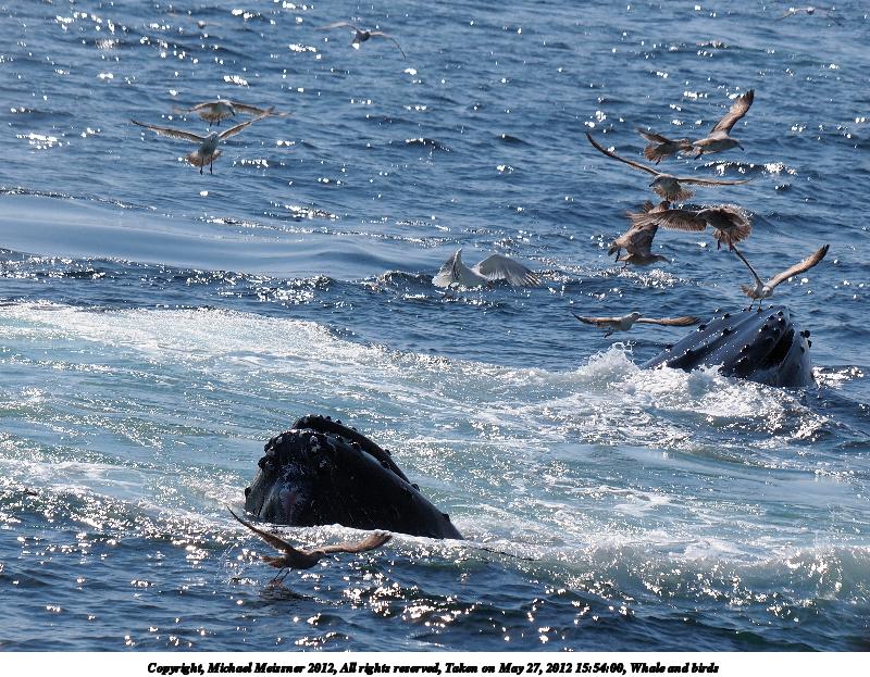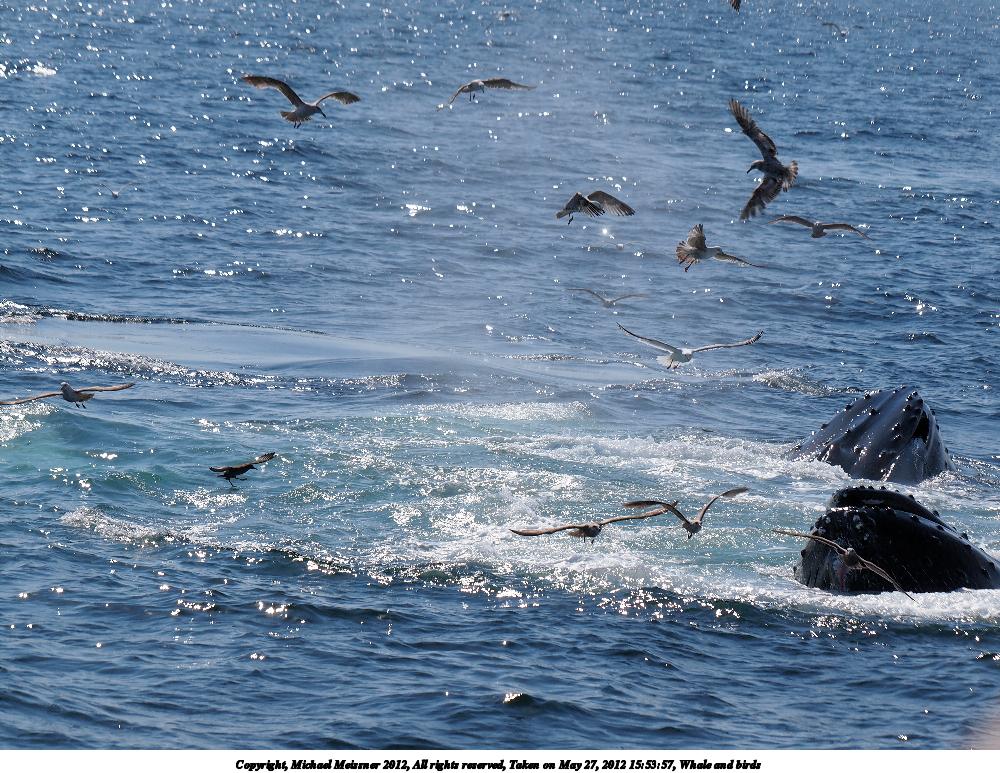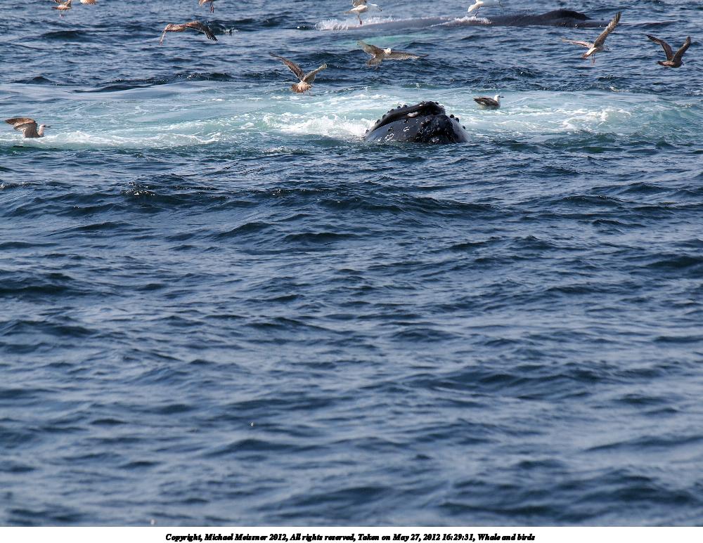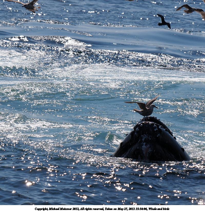 Picture #36: Whale and birds #28 1000x773, 207,487 bytes (203K), (html file) Copyright, Michael Meissner 2012, All rights reserved Olympus E-5 camera with Olympus 50-200mm lens and Olympus EC-14 (1.4x) f/9.0, ISO 200, 1/1000 sec, 283.0mm, auto mode, vivid color, matrix metering, IS1 (All Direction Shake IS) 35mm equivalent focal length 567.0mm, EC-14 Programs used: crop, raw therapee Taken by Michael Meissner on May 27, 2012 16:24:58 Last modified on June 02, 2012 at 21:04 |