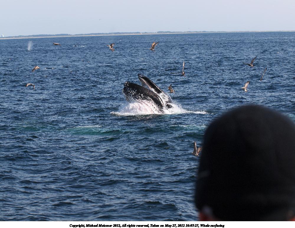 Picture #43: Whale surfacing #6 1000x773, 160,417 bytes (157K), (html file) Copyright, Michael Meissner 2012, All rights reserved Olympus E-5 camera with Olympus 50-200mm lens and Olympus EC-14 (1.4x) f/7.1, ISO 200, 1/640 sec, 70.0mm, auto mode, vivid color, matrix metering, IS1 (All Direction Shake IS) 35mm equivalent focal length 140.0mm, EC-14 Programs used: crop, raw therapee Taken by Michael Meissner on May 27, 2012 16:07:28 Last modified on June 02, 2012 at 21:02 |